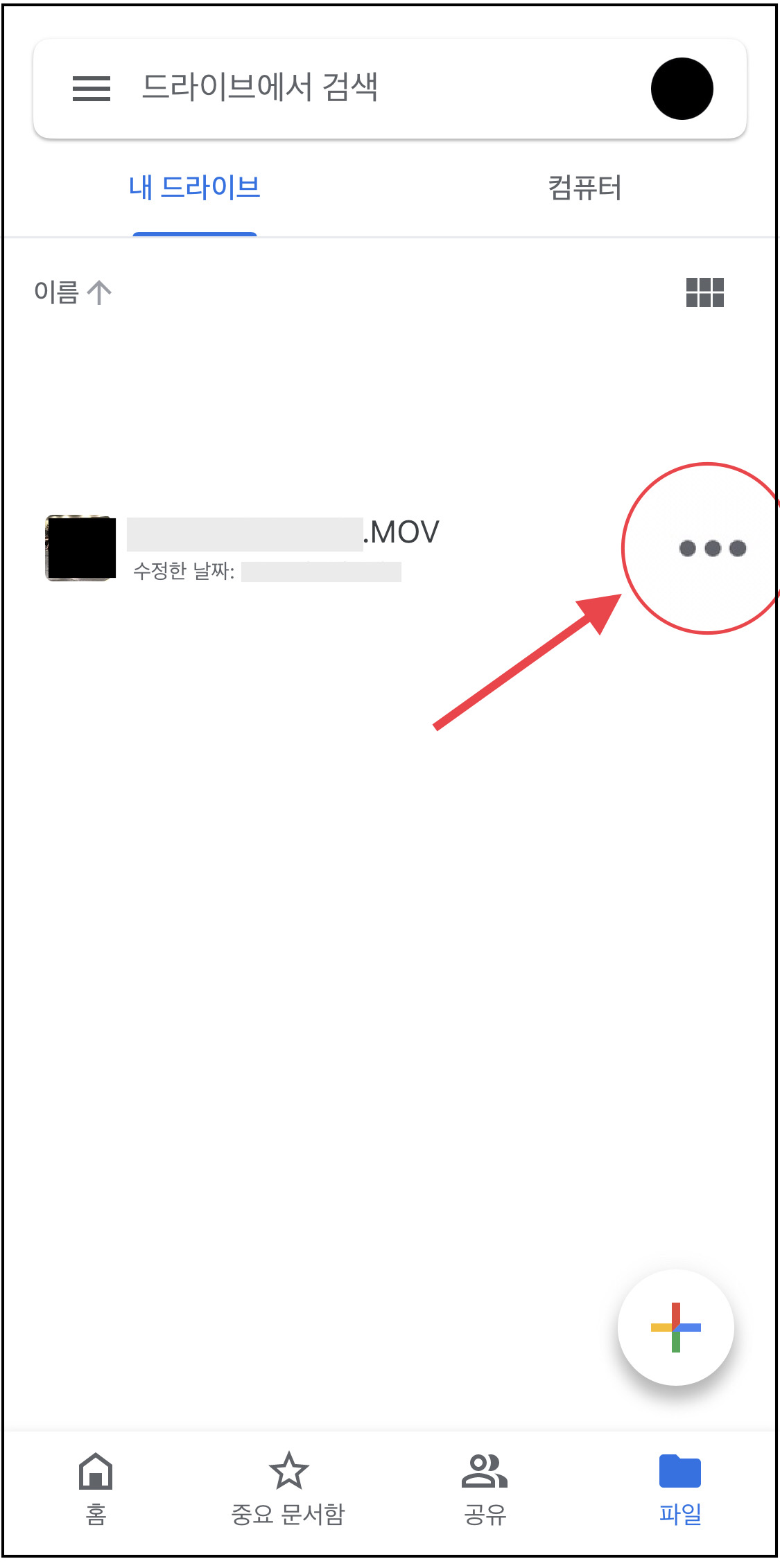 ▼ 업로드된 영상 오른쪽에 있는 점 세개[ ...] 버튼을 누릅니다.