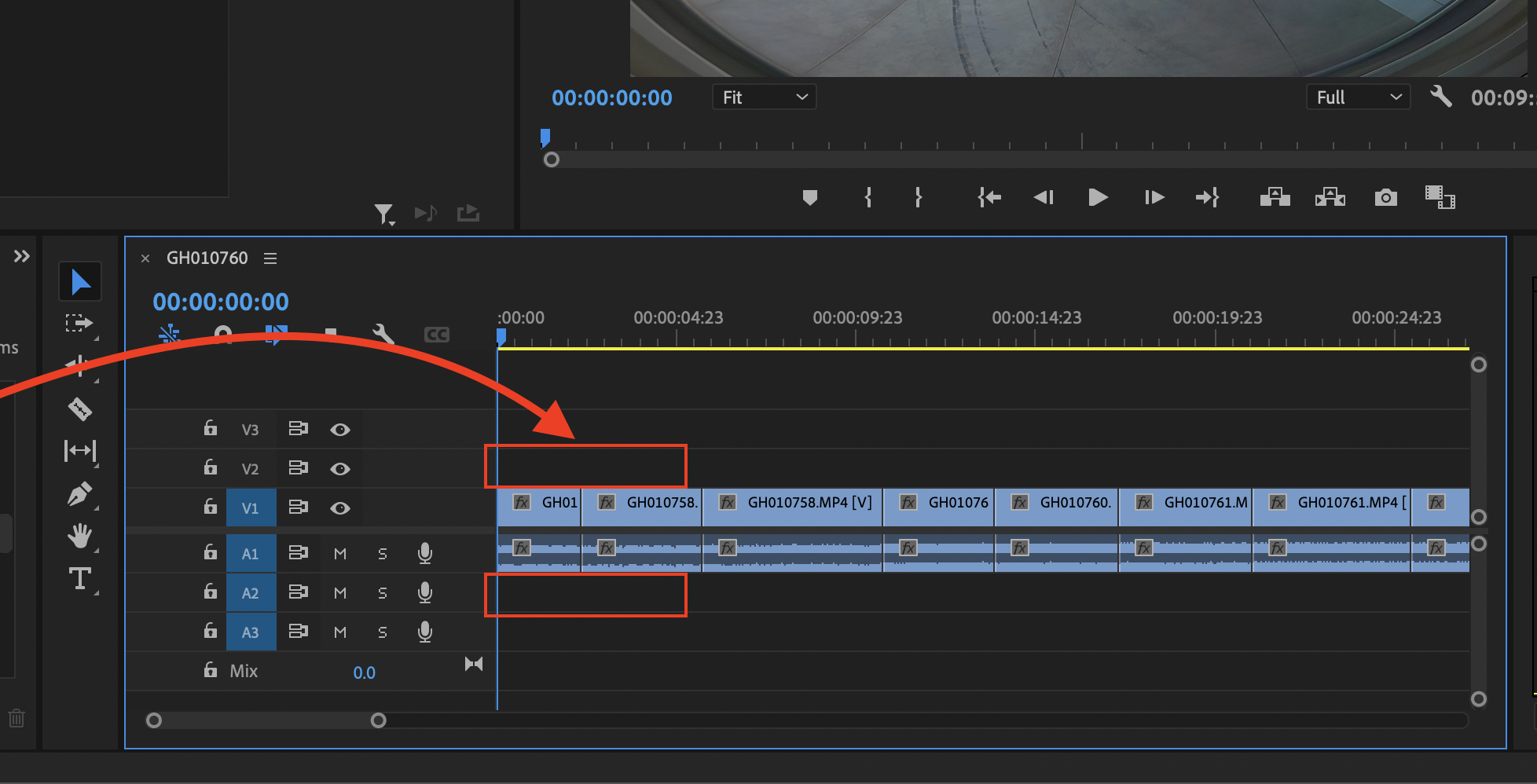▼ 타임라인 위에 새로운 클립 영상을 올려줍니다.