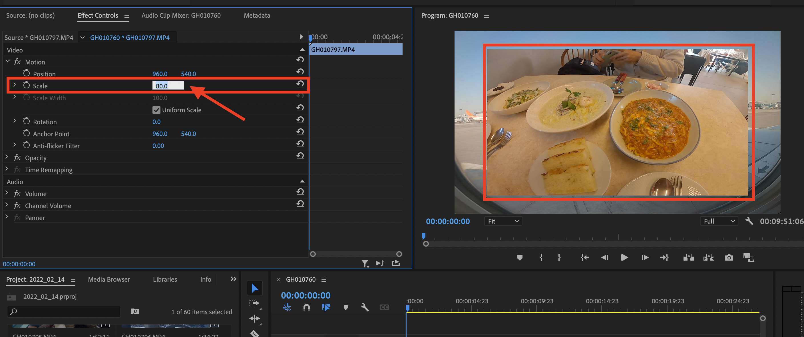 ▼ 그리고 [Scale]메뉴의 숫자를 80정도로 줄여줍니다. 그러면 위에 올려진 영상의 크기가 줄어듭니다.