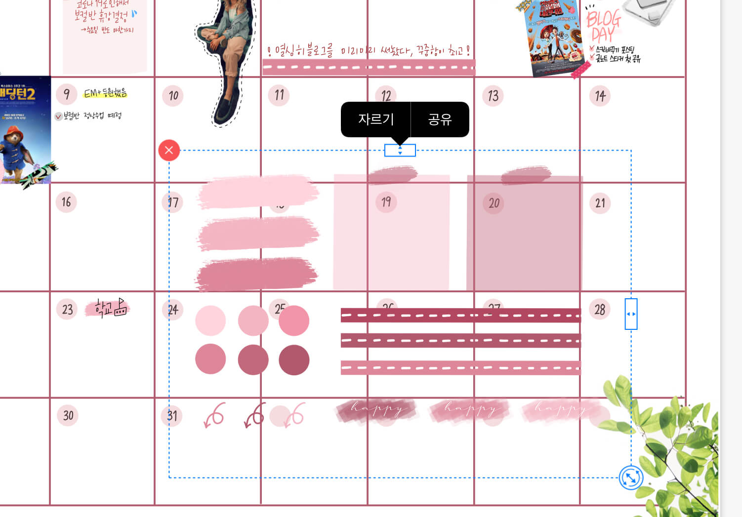 그리고 이 스티커를 오려내기 해줍니다. 아래와 같이 스티커를 한번 누르면 [자르기, 공유] 버튼이 나옵니다. 여기서 [자르기]를 선택하세요.