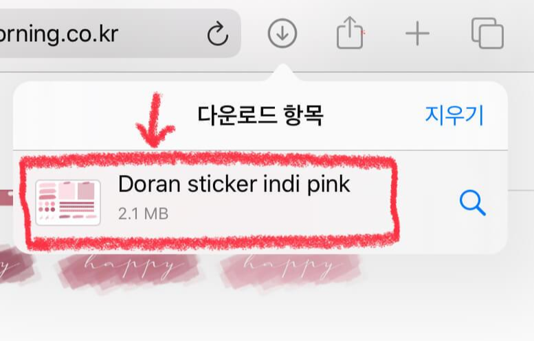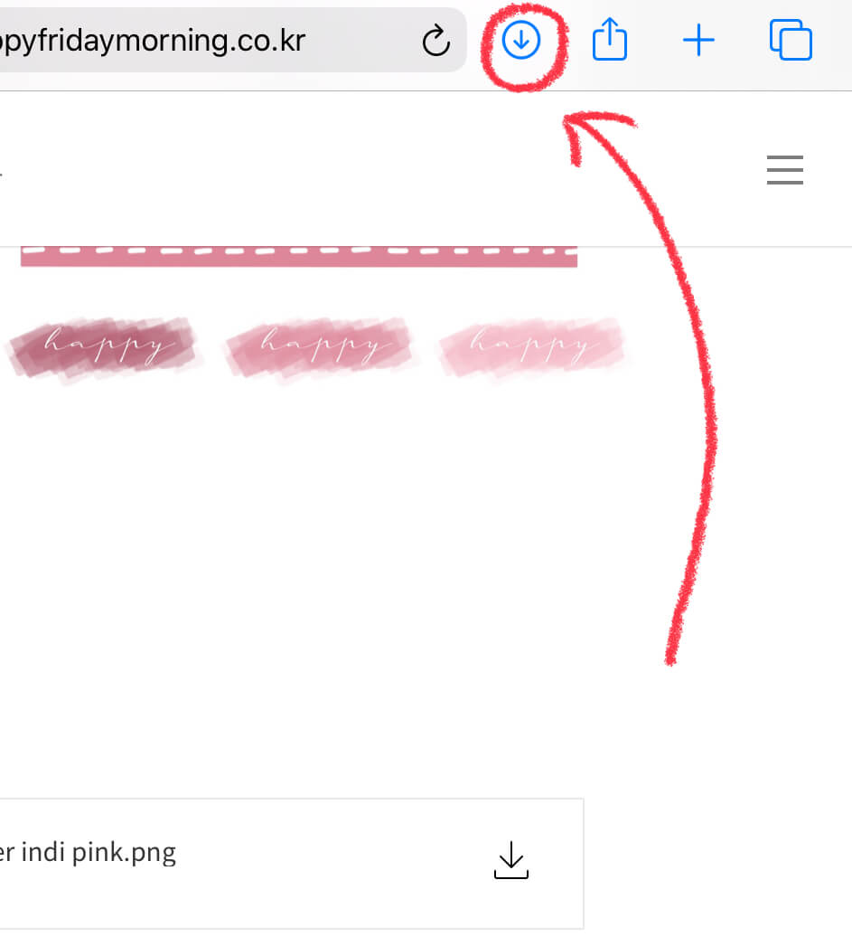 아이패드 safari 창을 열어서 무료로 다운로드할 스티커를 찾아줍니다. 그리고 아래 사진과 같이 스티커로 사용할 png 파일을 다운로드합니다.