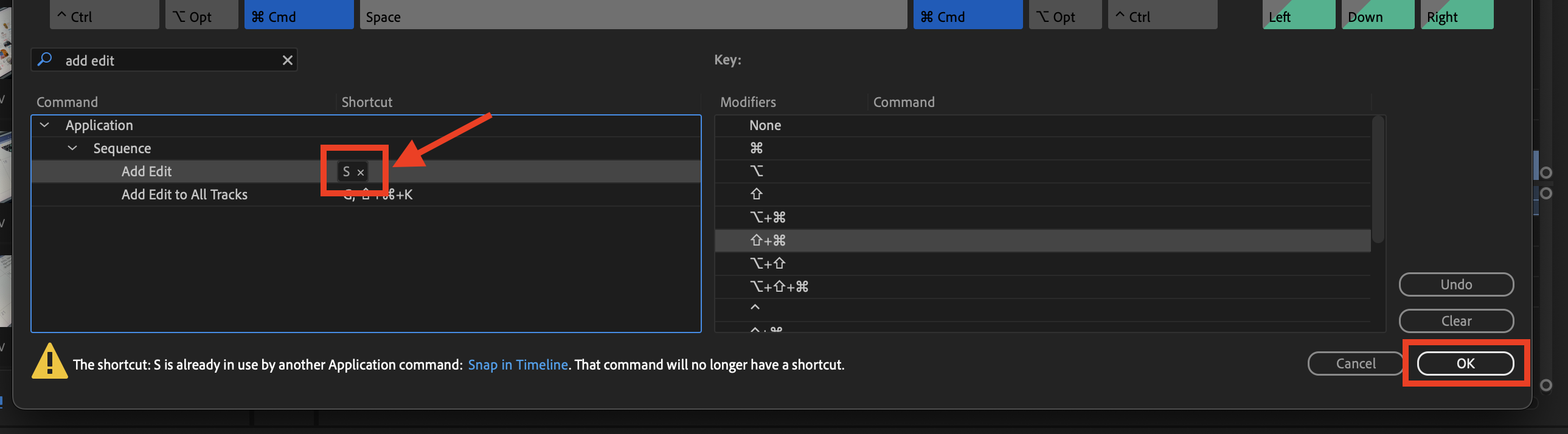 ▼ 이렇게 add edit 기능의 단축키가 command+K 인 것을 확인할 수 있습니다. 선택한 뒤 [삭제 delete] 해주세요.
