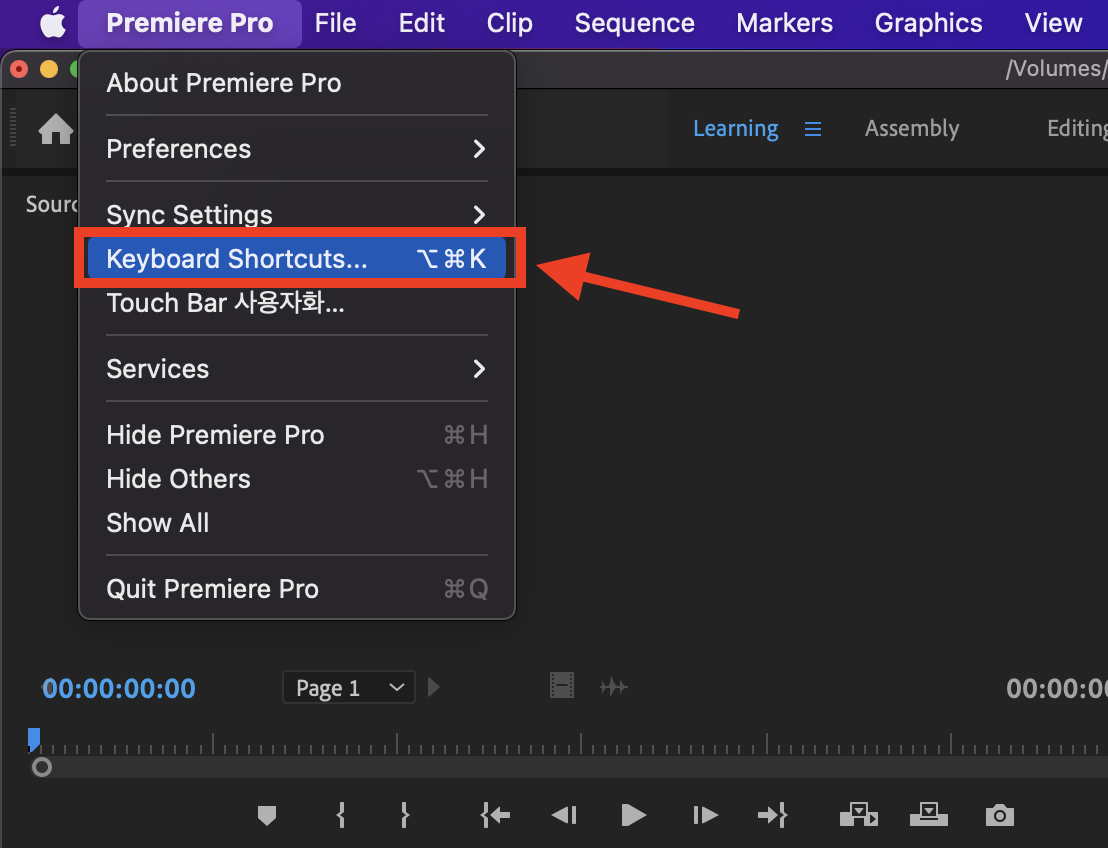 프리미어 프로 2022에서 단축키를 설정하려고 하는데, 포스팅이나 영상에서는 Edit(편집) 메뉴로 가면 단축기가 있다고 하지만 없더군요! 메뉴 위치가 바뀌어있길래 간단하지만 단축키 설정 메뉴 위치를 공유하려고 합니다 :) 단축키를 설정하는 단축키 (ctrl+alt+k , option+command+k) 가 있지만 메뉴로 기억해두어야 잘 기억하는 편이기에...