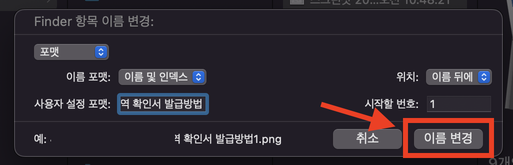 ▼ 파일 이름을 입력하고 난 뒤에 [이름 변경]을 눌러줍니다.