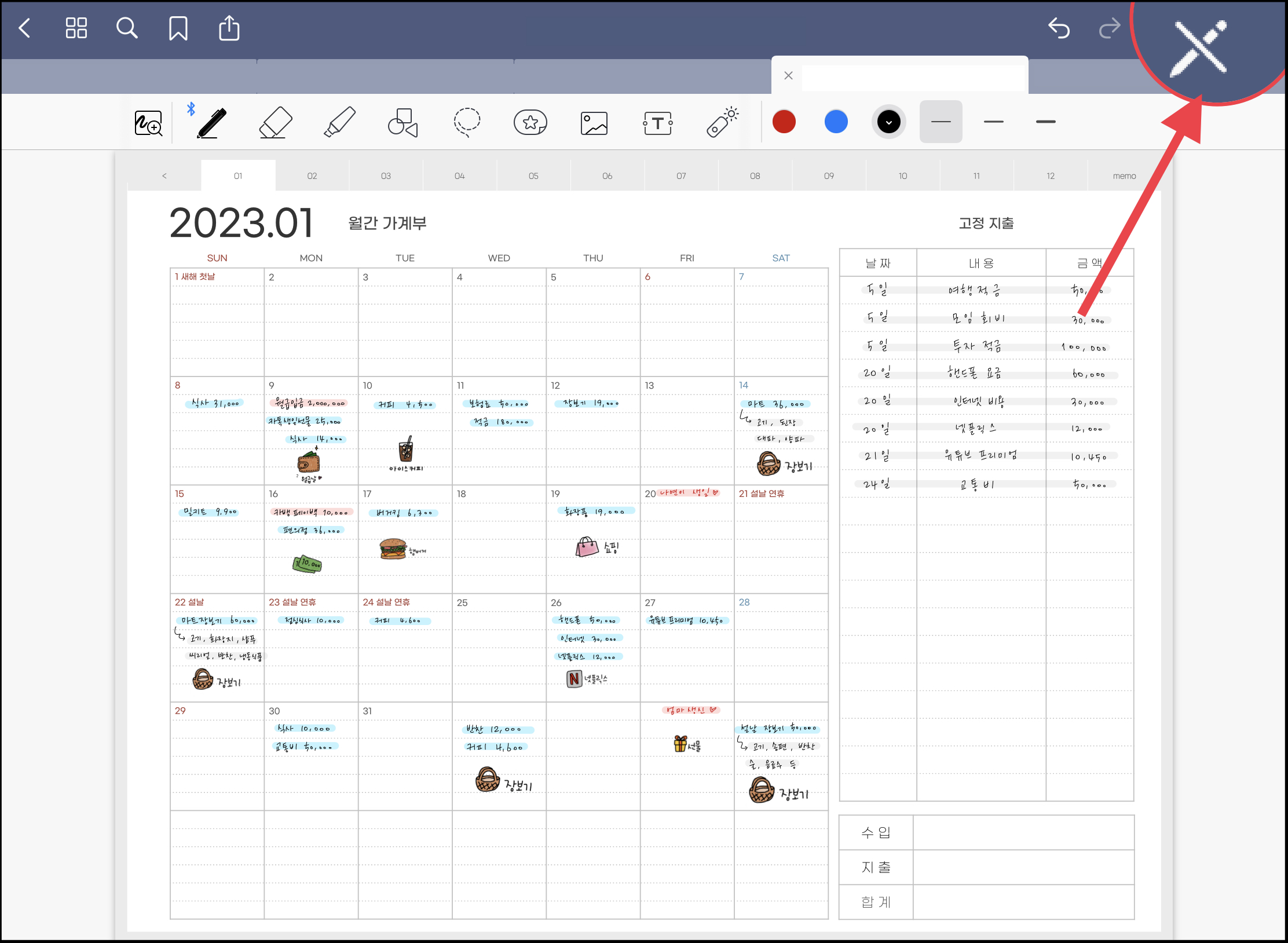 굿노트 2023년 월간 가계부 속지 다운로드 하이퍼링크 pdf (2023년 1월부터 12월까지 / Goodnotes CashBook)
