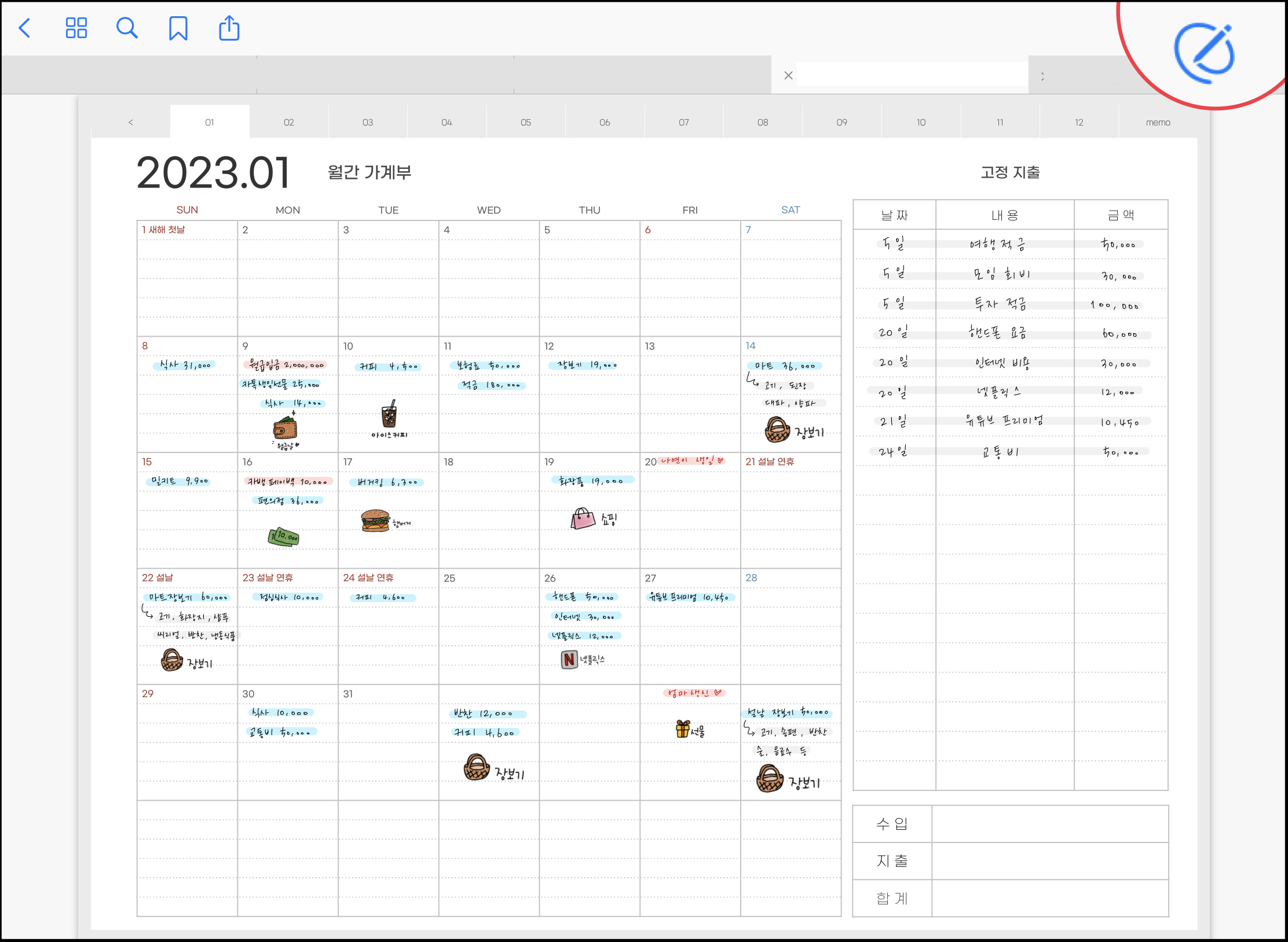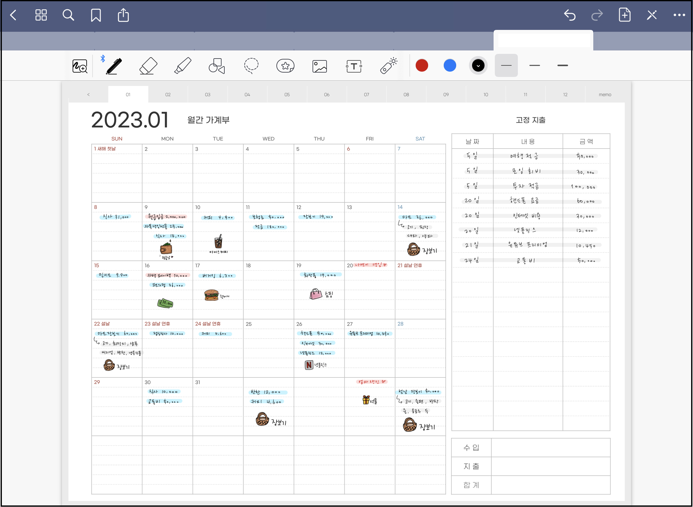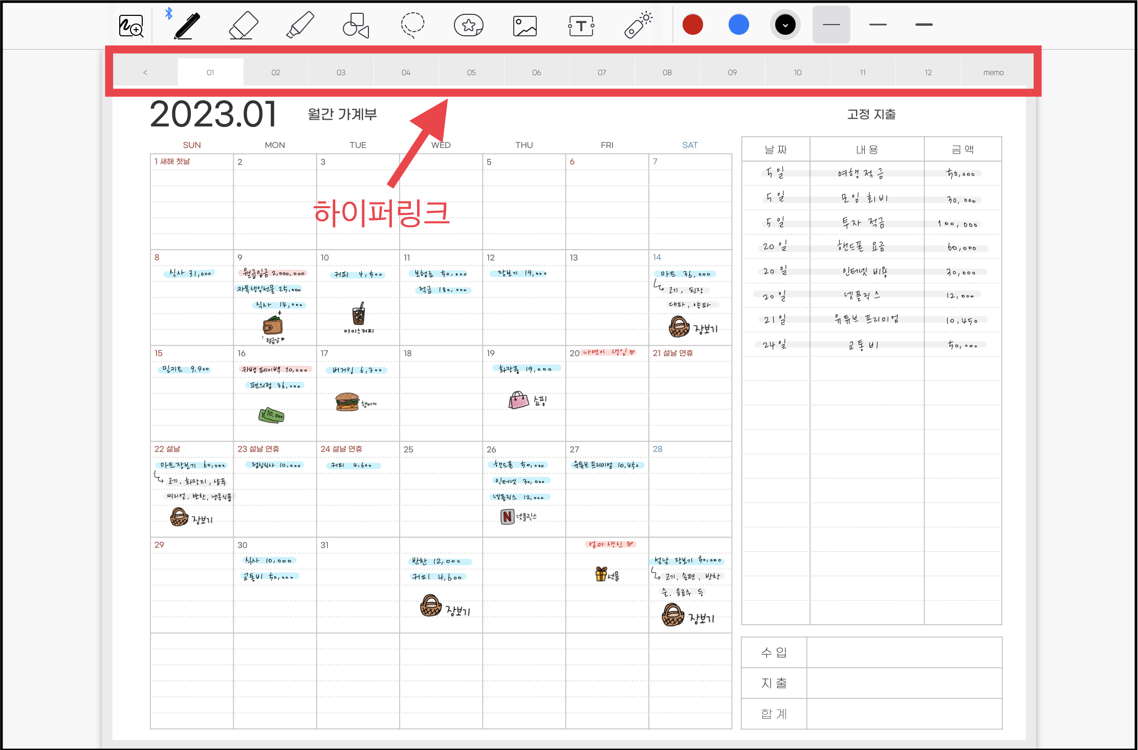 굿노트 2023년 월간 가계부 속지 다운로드 하이퍼링크 pdf (2023년 1월부터 12월까지 / Goodnotes CashBook)