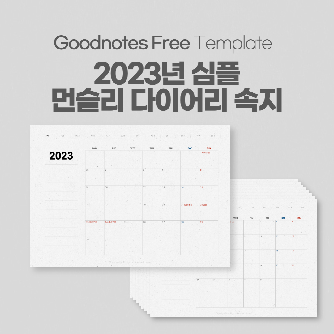 | 2023년 굿노트 <세로형 먼슬리 다이어리> 속지 공유 / Goodnotes Diary Free Template (7) | 2022.11.04 |