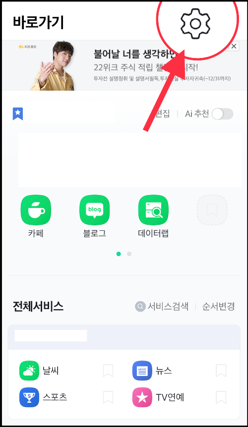 ▼ 바로가기 메뉴가 나오는데 오른쪽 상단에 있는 설정 메뉴인 [톱니바퀴]를 선택합니다.