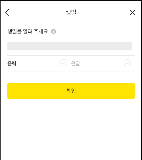 ▼ 음력일 경우에는 음력도 설정할 수 있습니다. 생일 설정을 완료하면 [확인] 버튼을 누르면 됩니다.