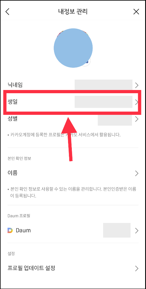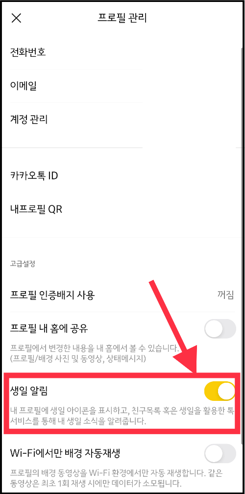 이렇게 카카오톡에서 나의 생일 알림을 공개 혹은 비공개할 수 있습니다.
