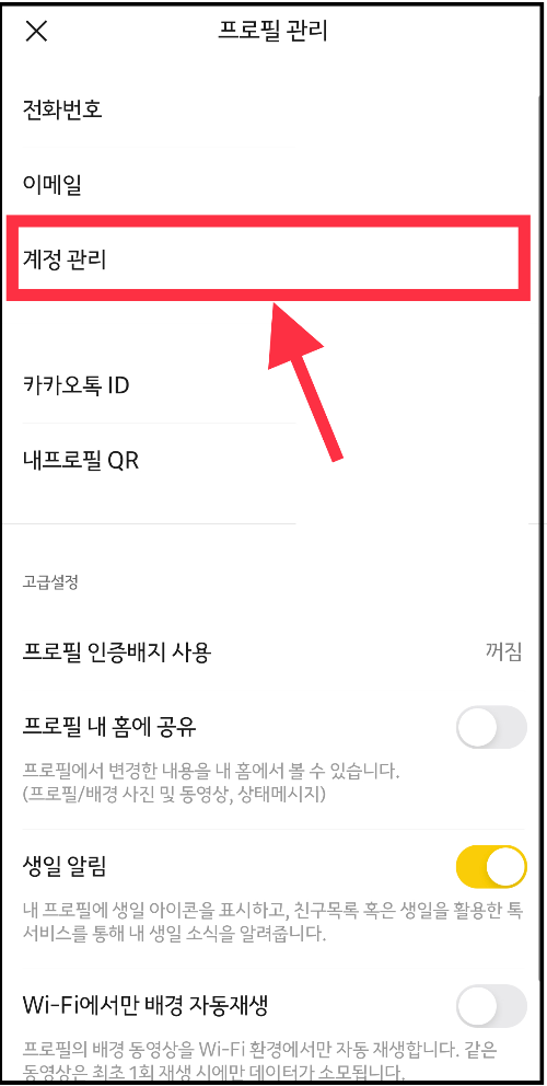 ▼ 내 생일이 제대로 설정되어 있는지 확인하고 싶을 경우에는 [계정 관리] 에 들어간 후