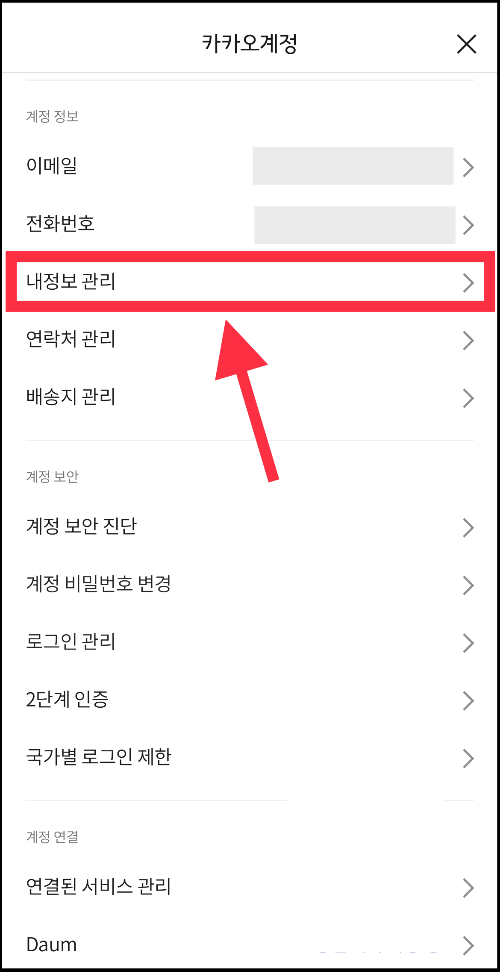 ▼ [내 정보 관리] 메뉴를 누릅니다.