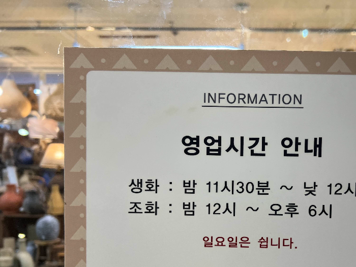 그리고 일요일은 휴무일 이다.