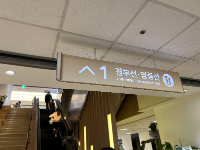 위 사진 처럼[1. 경부선, 영동선] 간판을 찾았다면 다 찾은 거다. 새로운 루트를 찾아보겠다고 9호선에서 바로 올라왔더니 꽤 오래 돌다가 찾았다. 아무래도 3호선 라인에서 올라오는 편이 가장 찾기가 쉽지 않을까 싶다. (그래서 나는 9호선이지만 3,7호선 환승 라인으로 이동한 뒤에 올라온다.)