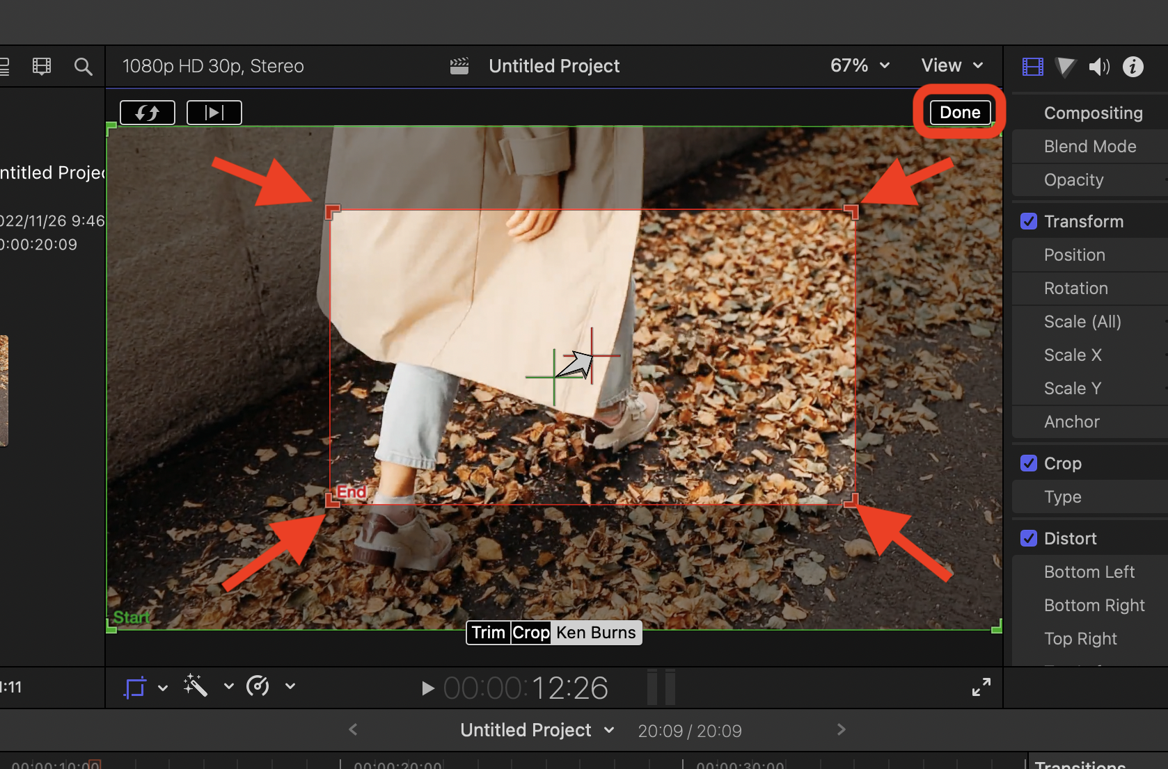 ▼ 화면을 더 크게 확대하고 싶다면 End 박스를 더욱 작게 만들어 주면 됩니다. 크기가 설정되고 나면 오른쪽 상단의 [Done]을 눌러줍니다.