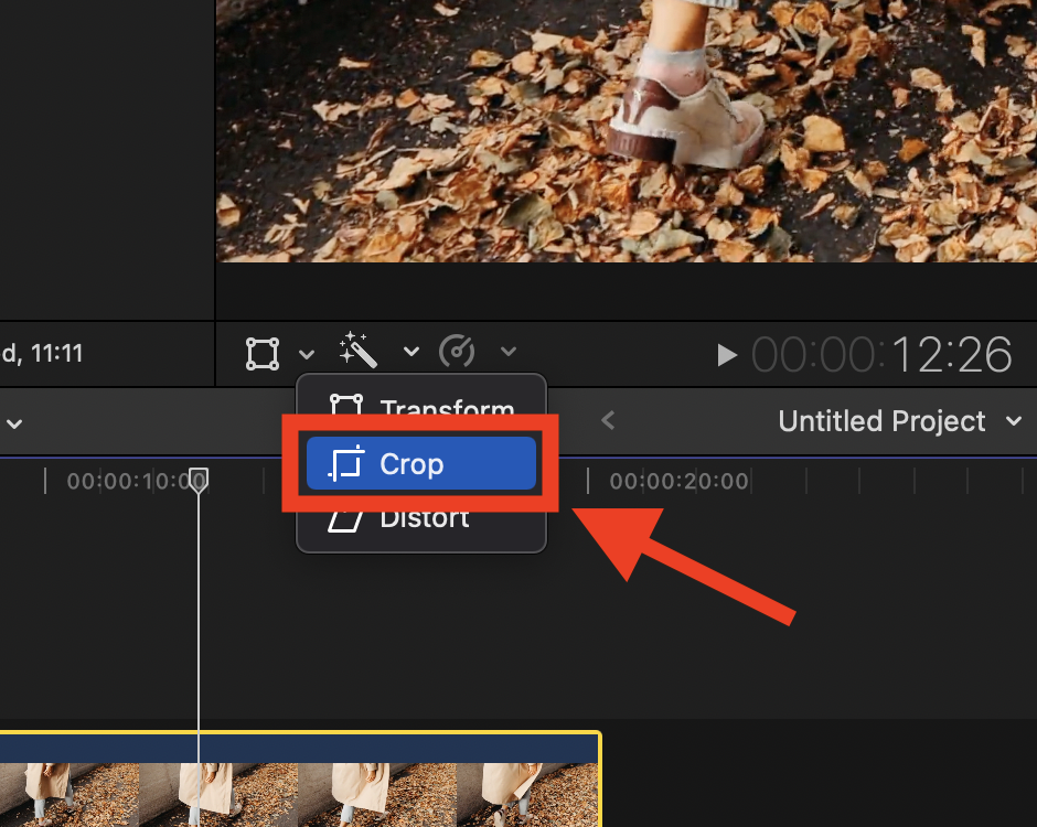 ▼ 그러면 아래와 같이 Transform, Crop, Distort 세 가지 메뉴가 나오는데, 여기서 [Crop]메뉴를 선택합니다.