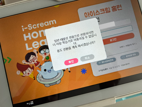 홈런 로그인 화면에 아이디와 패스워드를 입력했다. 그랬더니 아래와 같은 문구가 나왔다. 더이상 학습기기로 이용할 수 없다는 내용이었다.