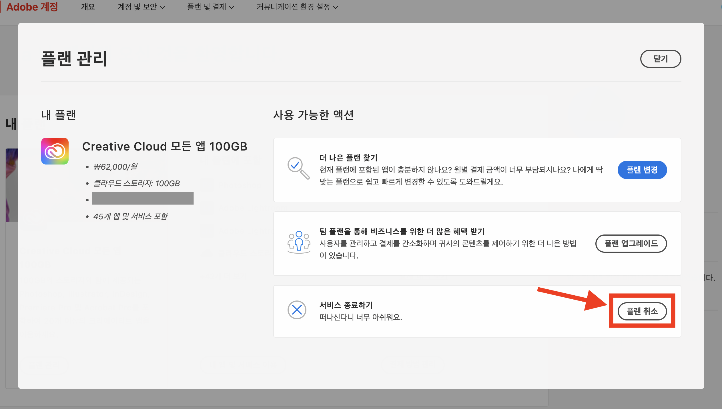 어도비 프로모션으로 어도비의 모든 프로그램을 35,200원으로 이용할 수 있는 구독권을 결제해서 1년 동안 사용하고 있었다. 그런데 갑자기 62,000원이 결제되는 것을 보고, 벌써 1년이 지났다는 것을 알았다. 부랴부랴 컴퓨터를 켜고 어도비 플랜을 결제 취소를 찾아보았다.