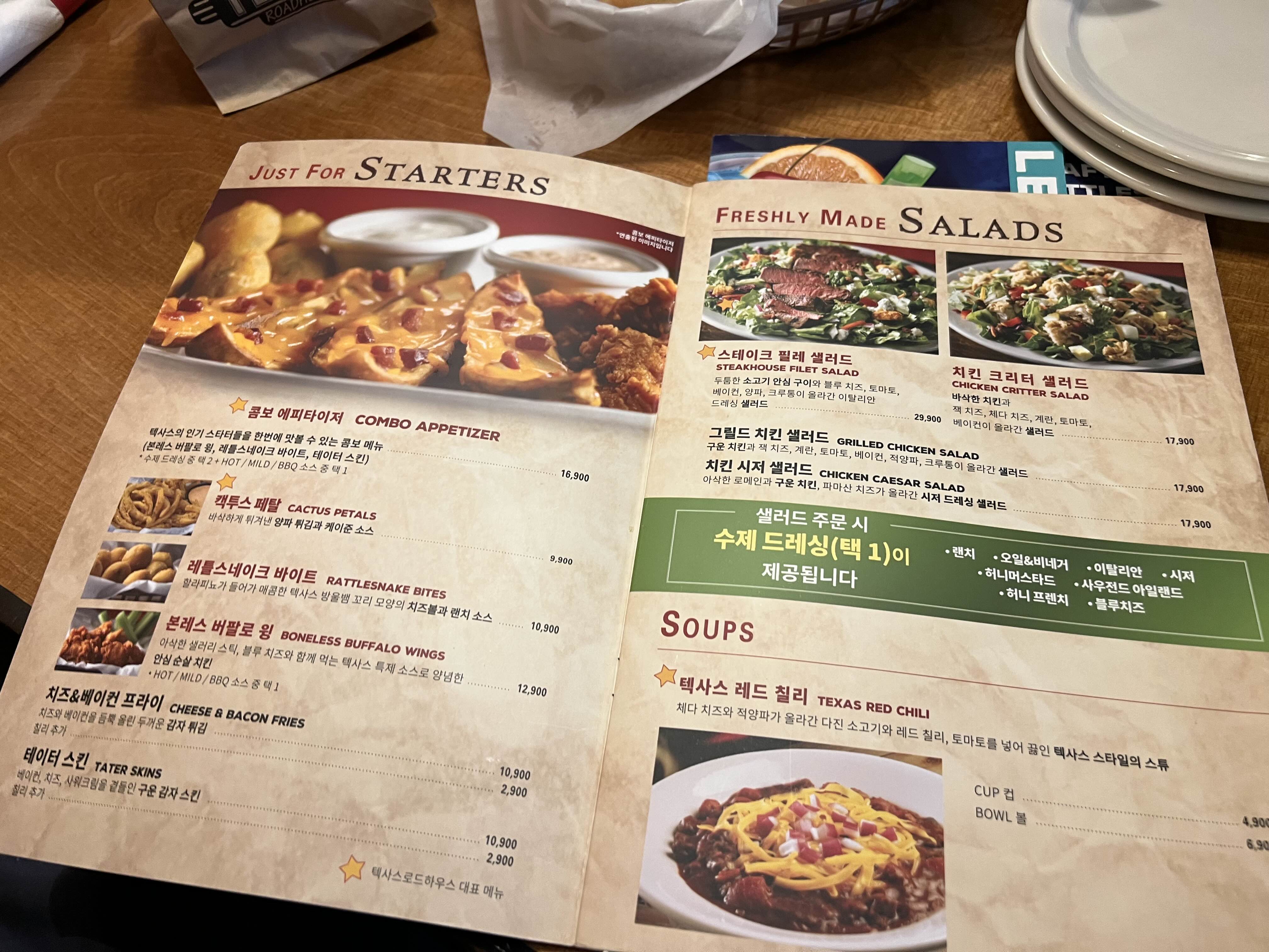 아웃백만 좋아하던 우리가 다음에는 이곳 <텍사스 로드 하우스>에 또 오자고 했다. 그만큼 가성비도 훌륭하고 맛도 좋았다. 다만 겨울이라서 매장이 외부 출입구와 가까운 곳은 다소 춥게 느껴져서 다음에 방문했을 때에도 매장 안쪽으로 앉을 수 있으면 좋을 것 같다.