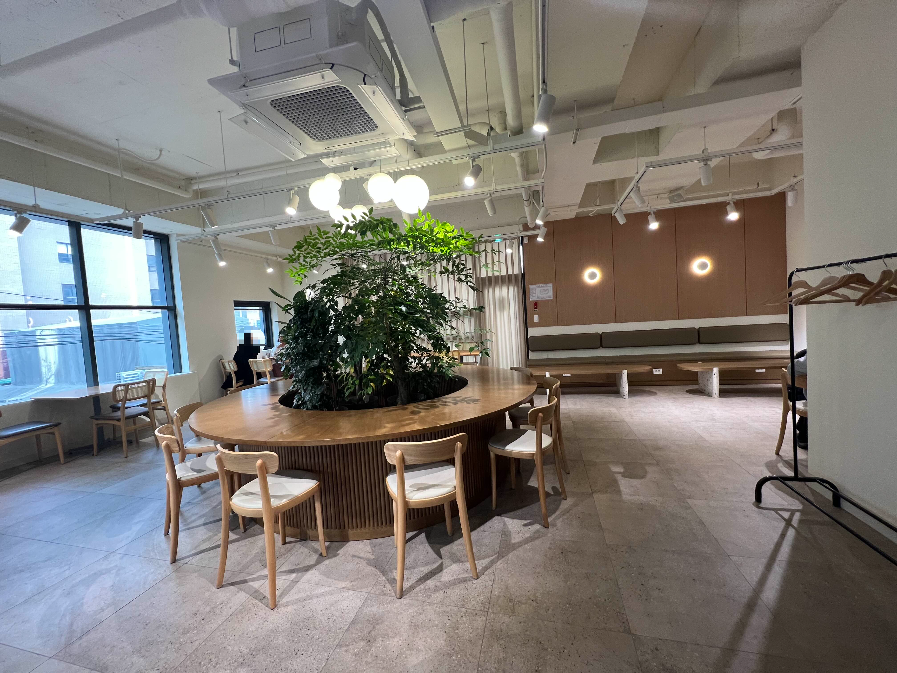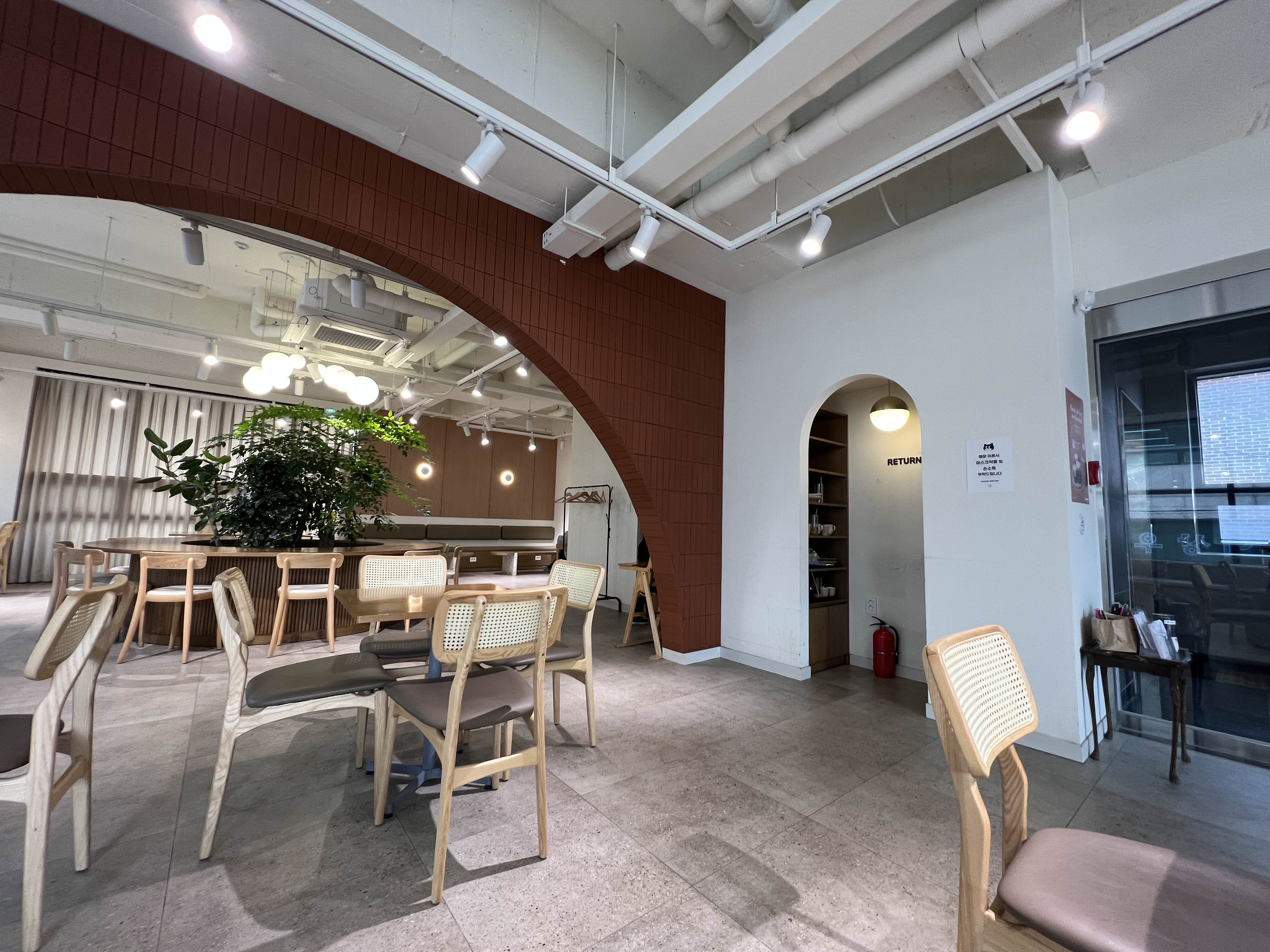중앙에 푸릇한 식물이 있어서 밋밋할 수 있는 카페 분위기를 산뜻하게 만들어 주는 듯 했다.