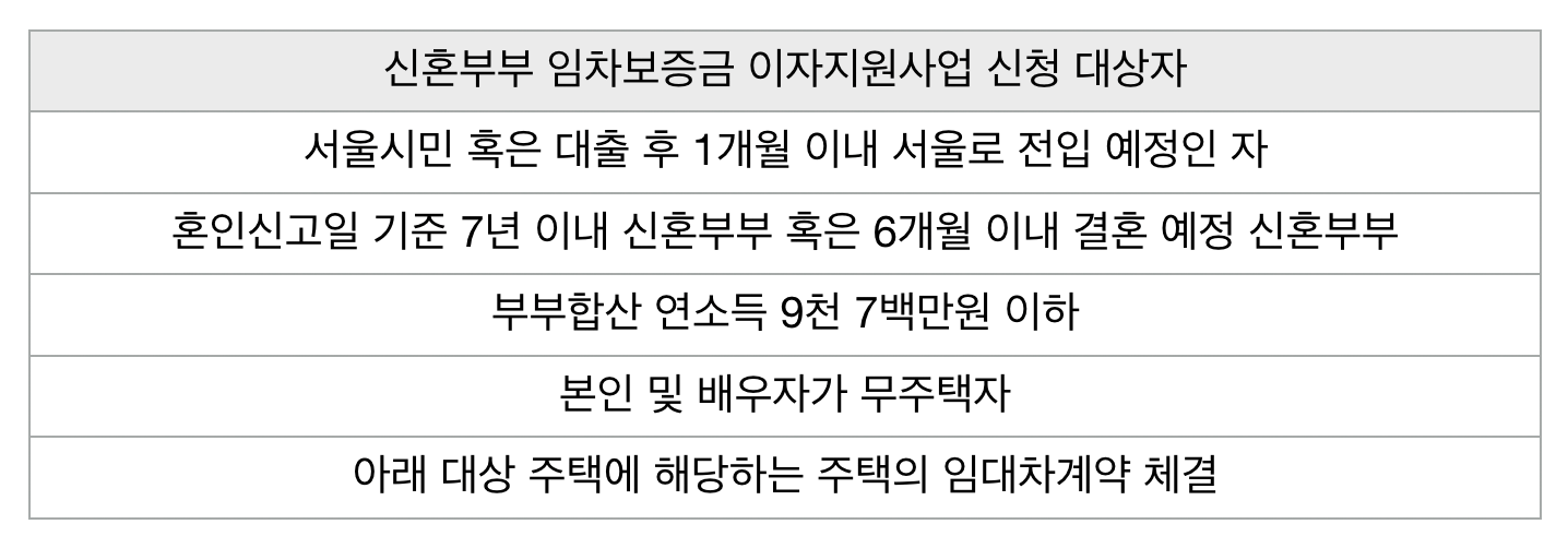 혼인신고일 기준 7년 이내 신혼부부 혹은 6개월 이내 결혼 예정 신혼부부