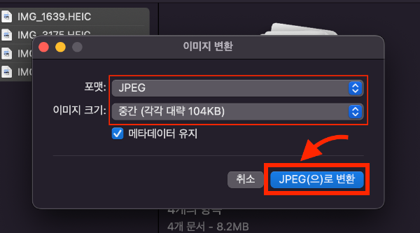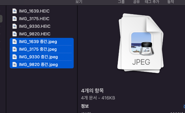 예전에는 사진 편집 프로그램을 이용해서 변환했었는데, 이렇게 맥북에서 바로 변환할 수 있어서 매우 편리한 것 같다.