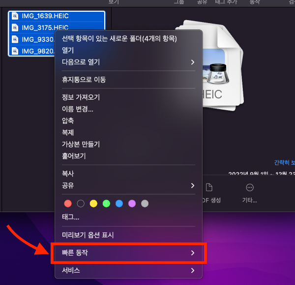 ▼ 변환하고자 하는 파일들을 선택한 뒤, 우클릭(트랙패드 두손가락 터치)을 한다.
