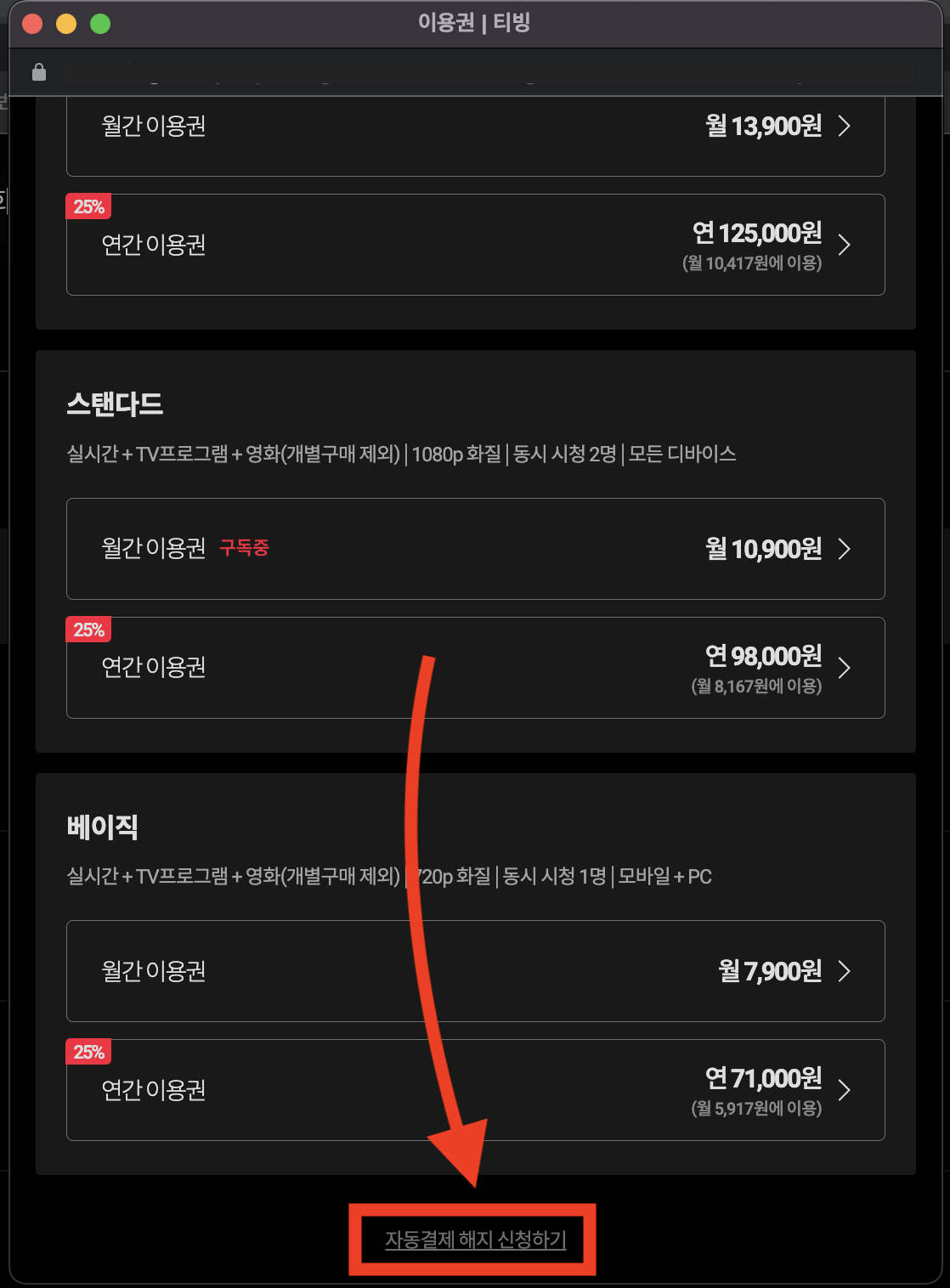 요즘 넷플릭스뿐만 아니라 웨이브, 왓챠플레이 등등 정말 다양한 OTT 서비스 플랫폼들이 존재한다. 그중에 나는 티빙을 구독해서 이용하고 있었는데, 최근에 해지해야 할 일이 생겼다. 바로 KT요금제에서 티빙을 볼 수 있게 해 준다는 것. 그래서 기존에 구독하던 티빙을 해지하기로 했다.