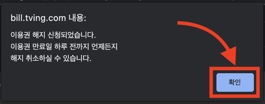 ▼ 이렇게 되면 티빙 구독권 해지가 완료 된다. 이용권 만료일 하루 전까지 해지를 취소할 수 있다고 한다.