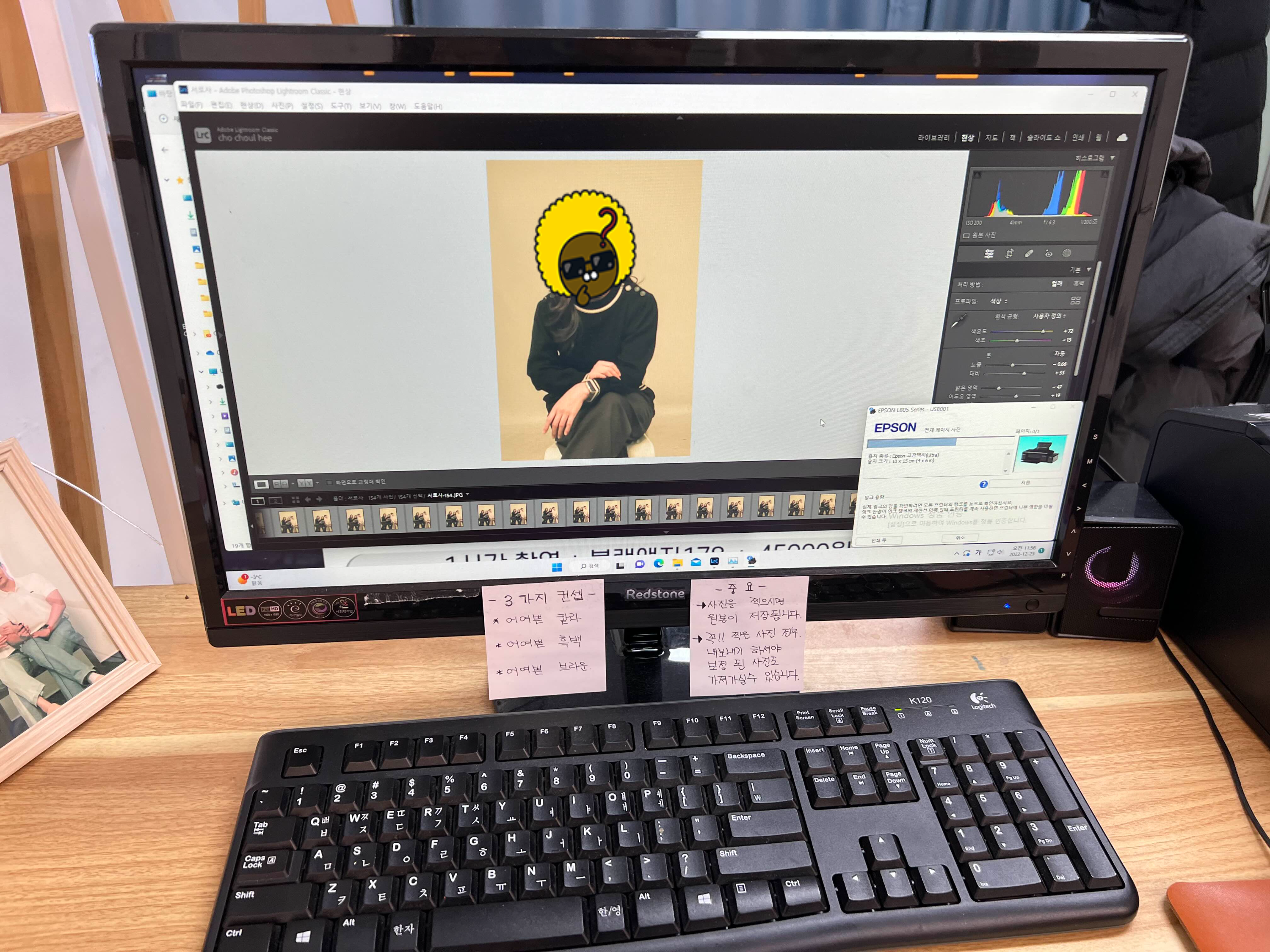 우리는 3~4인용 금액으로 예약했기에, 4장의 사진을 인화할 수 있었다. 인쇄하는동안 사진들 원본을 압축해서 메일로 보내놓았다. 생각보다 인쇄시간이 오래 걸려서 마지막에 살짝 조급한 마음이 들었다. 다음에 오면 5분정도 빨리 사진찍는걸 마무리 해야겠다.