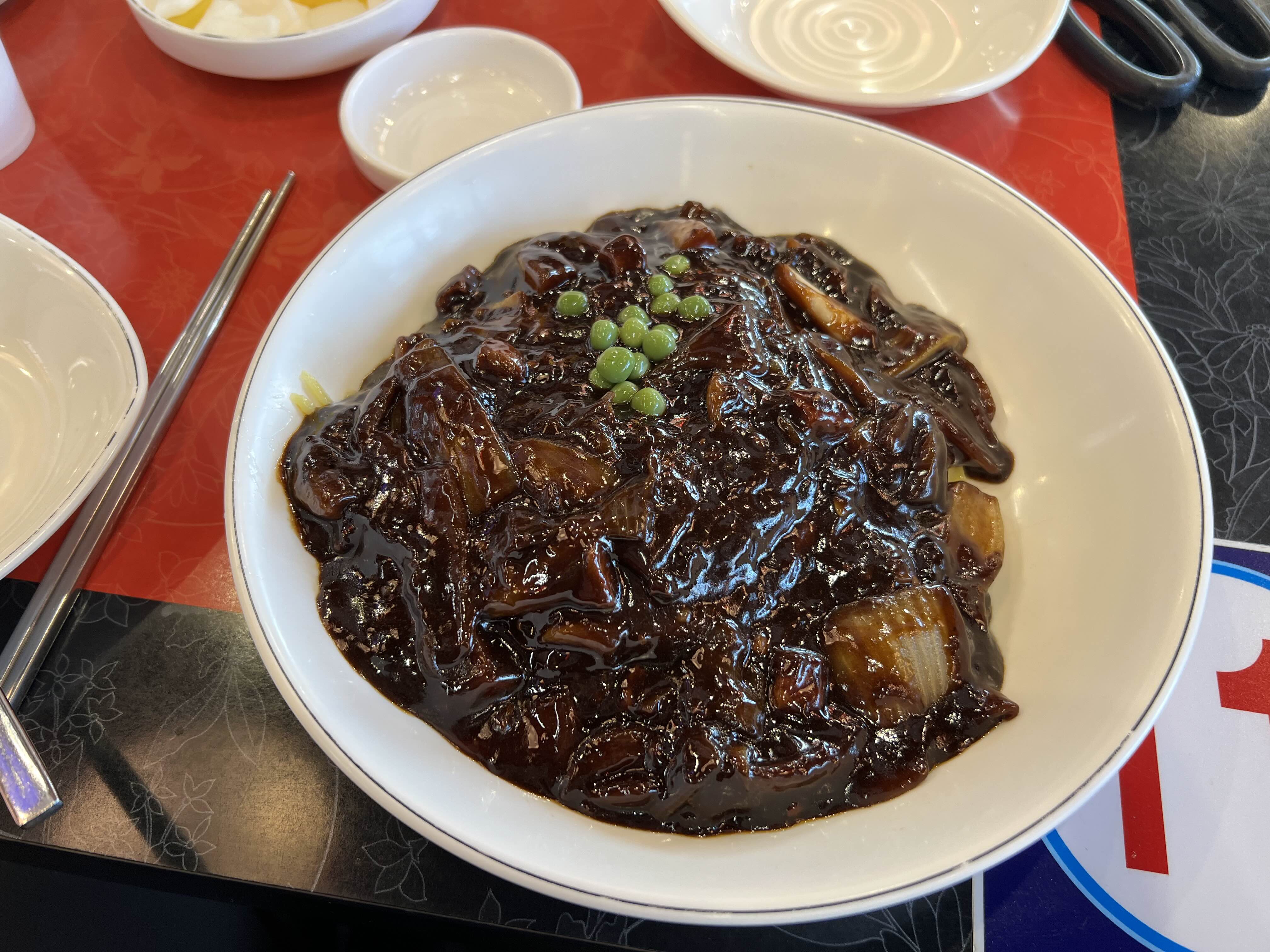 우리가 시킨 짜장면. 사진으로 보기에는 보통 짜장면과 비슷해보이지만, 쟁반이 더 넓은 편이다.
