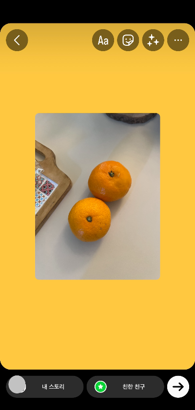이렇게 인스타그램 스토리에 배경색을 넣을 수 있습니다. 특히 중간에 색깔을 선택할 때, 스포이드를 선택하면 사진에서 색상을 추출할 수 있으니 이 기능을 이용하면 더 센스 있는 스토리를 만들 수 있을 것 같습니다.