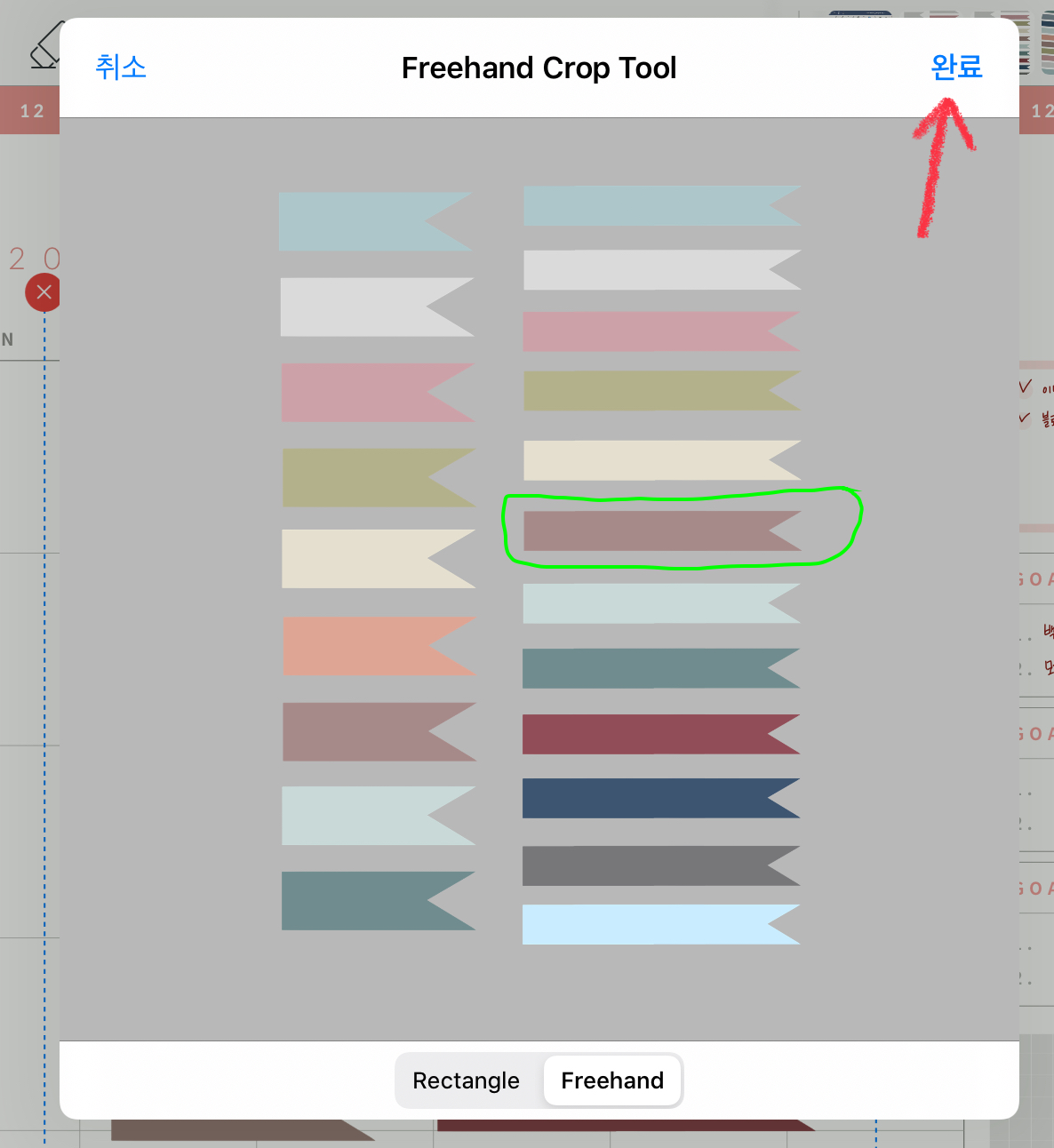 다시 본론으로 돌아와서 아래 이미지와 같이, [Freehand] 로 들어간 다음에 원하는 스티커를 오려내기 해주세요.