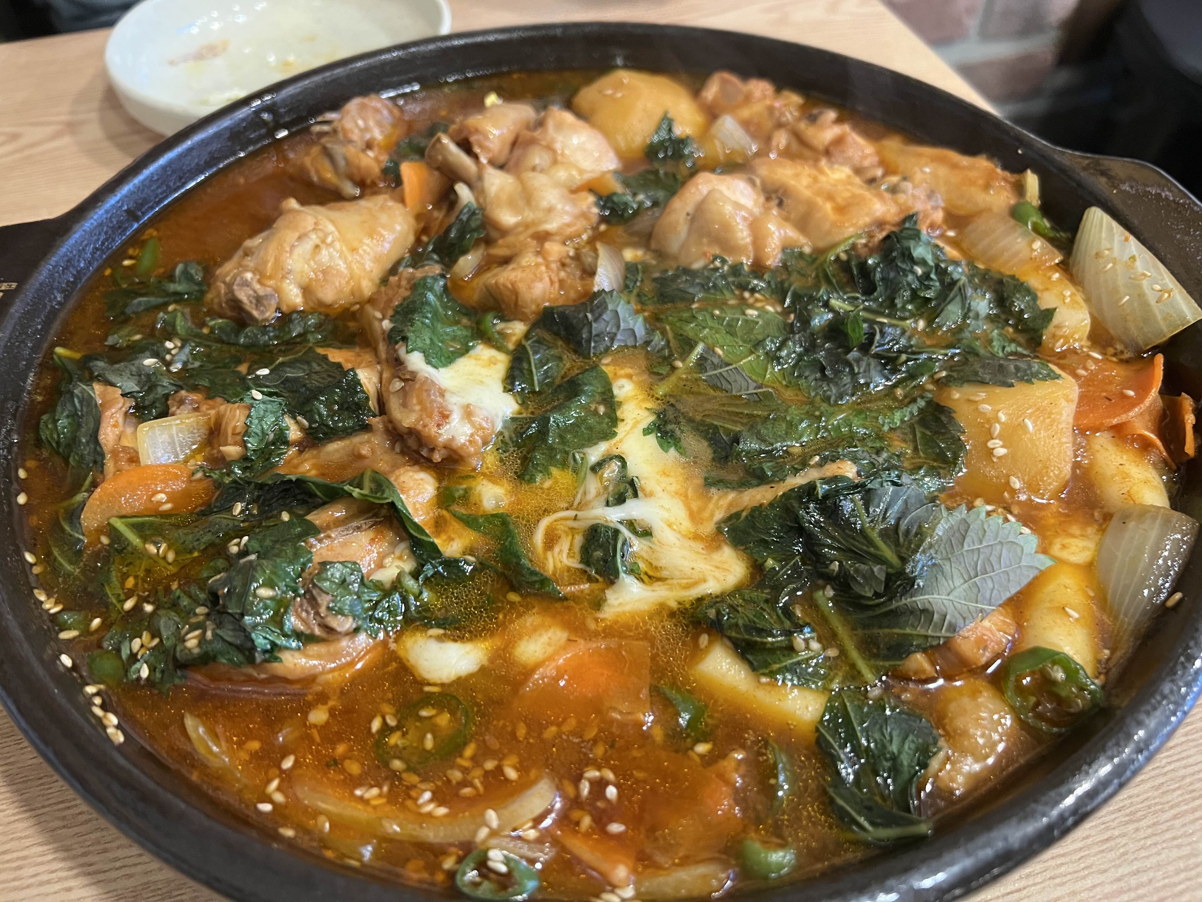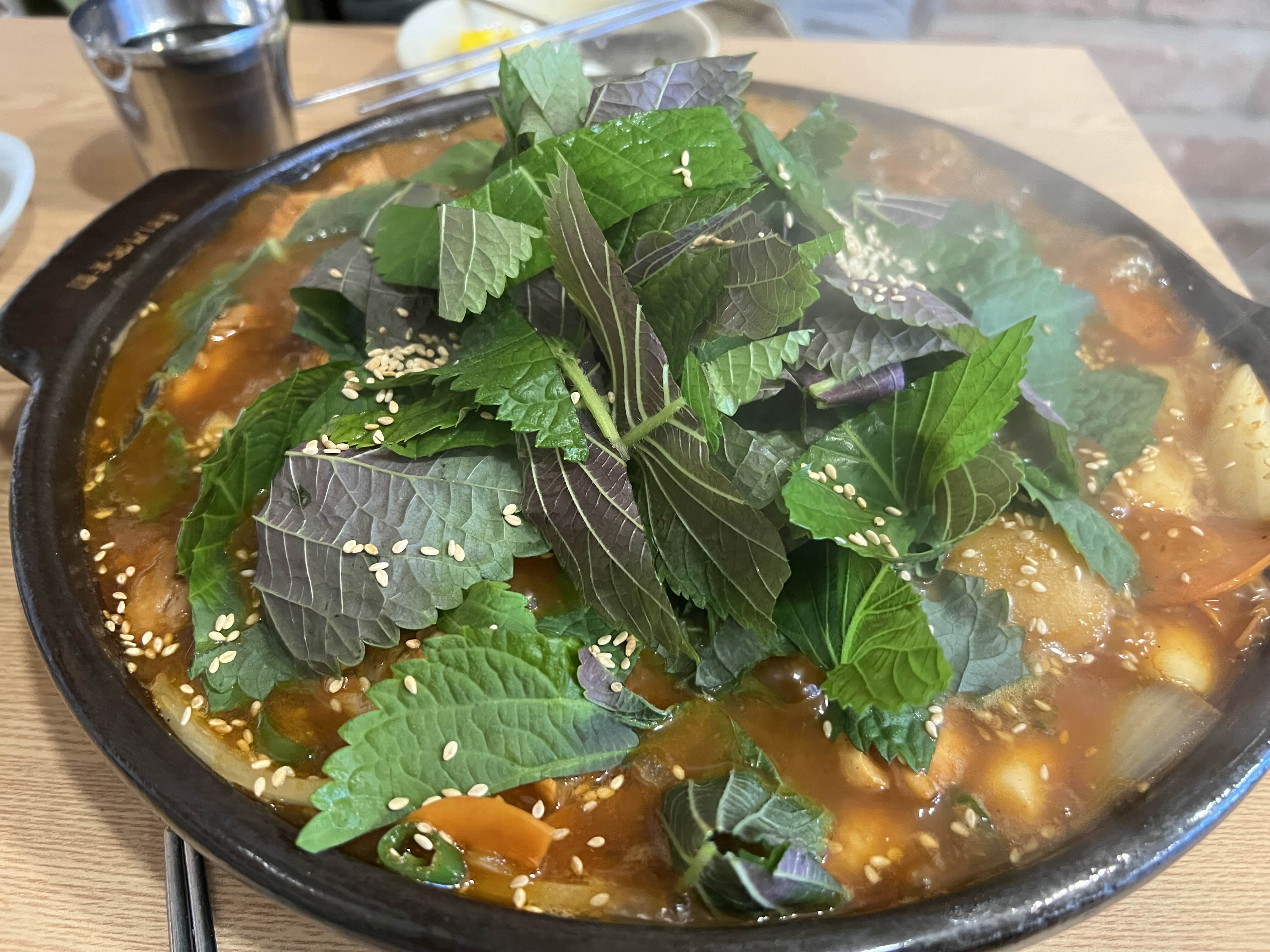 시간이 조금 지나니 깻잎의 숨이 죽고 깻잎향이 닭고기와 어우러지기 시작했다. 그리고 국물을 맛본 순간 '와!' 하는 감탄사를 내뱉었다. 함께 간 언니와 함께 정말 맛있게 먹었다.