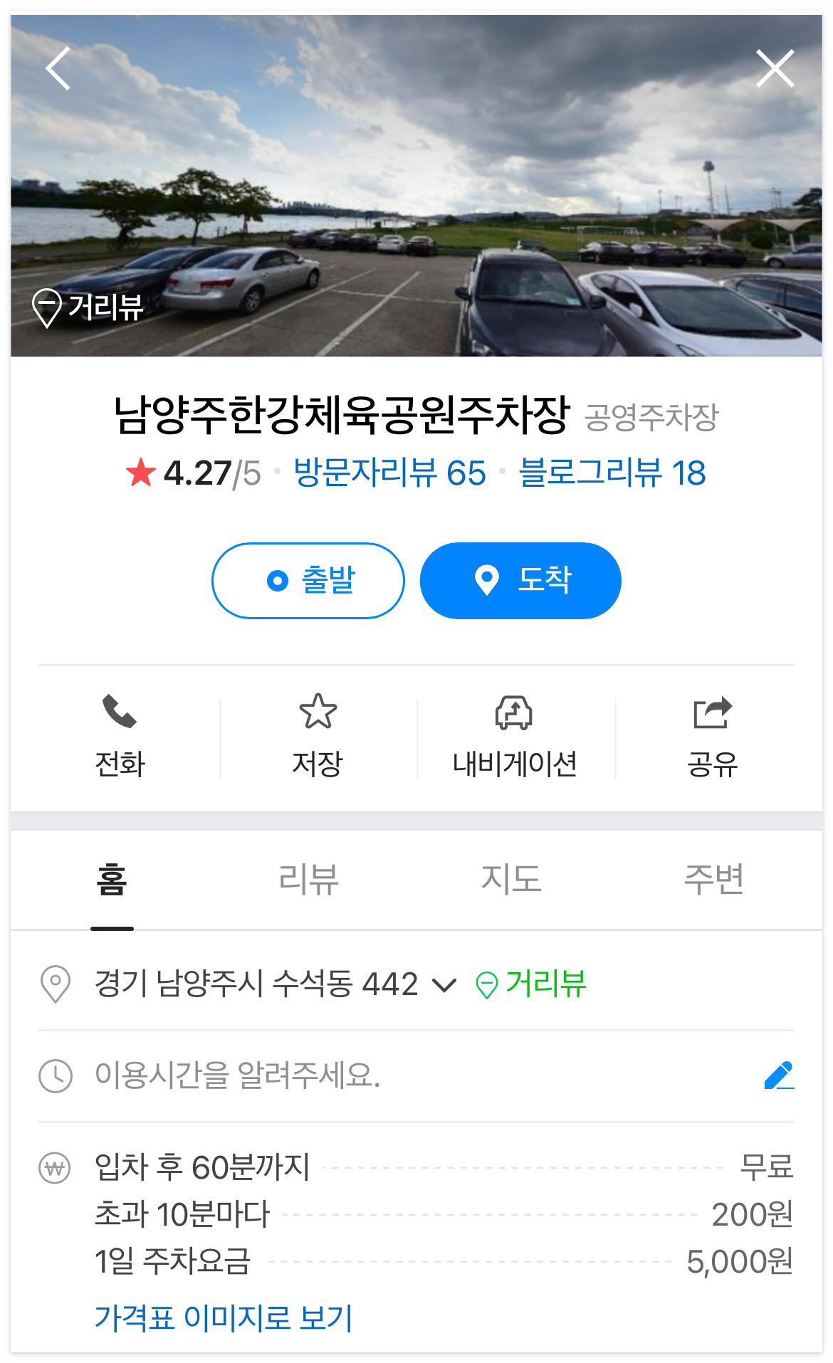 남양주 한강주차장으로 입차 후 1시간이 무료이고, 초과 10분마다 200원. 즉 1시간에 1200원인 셈이다. 주차장은 아이파킹이었지만 자동결제는 되지 않아서 출차할 때 따로 계산을 했다.