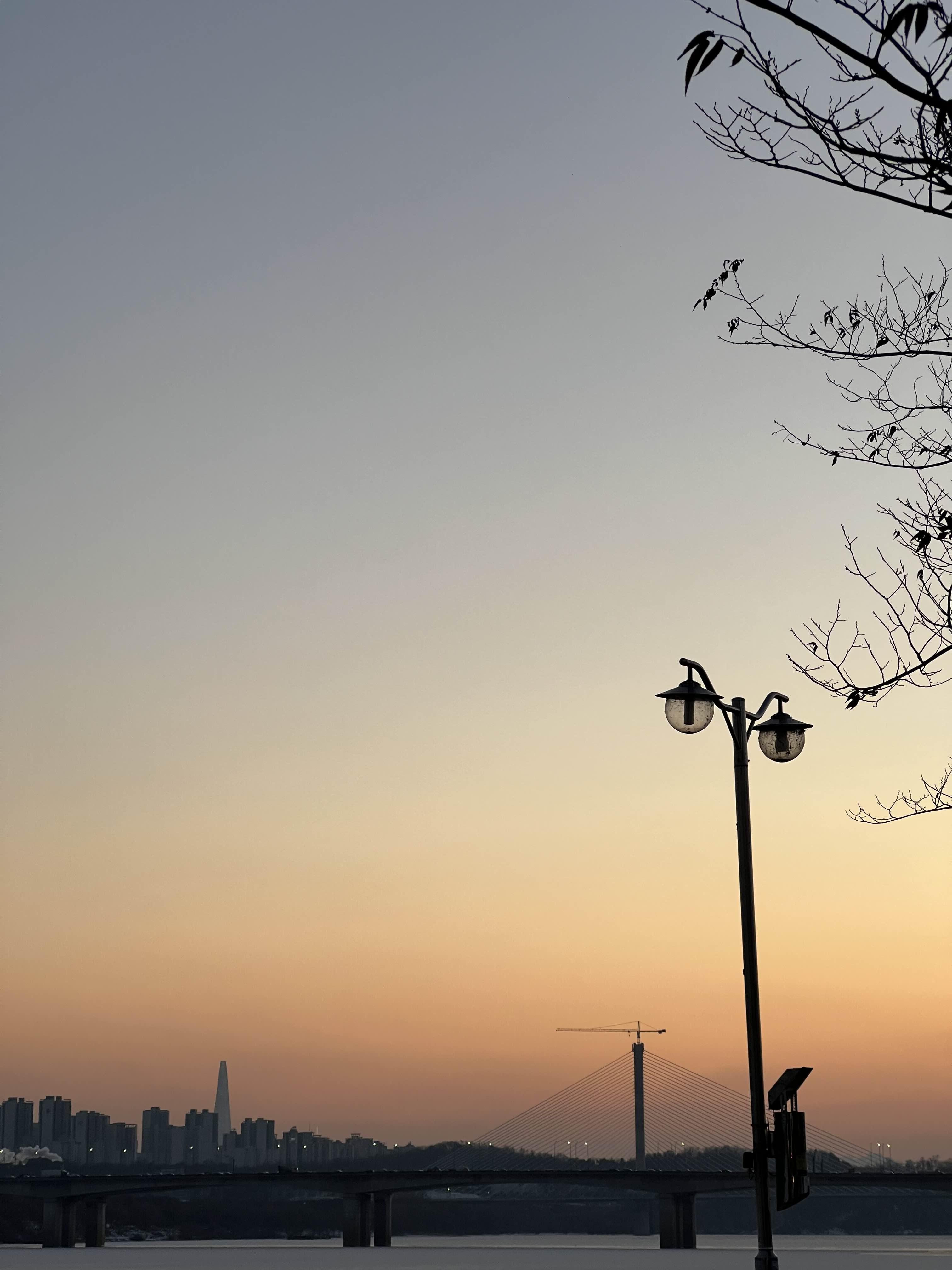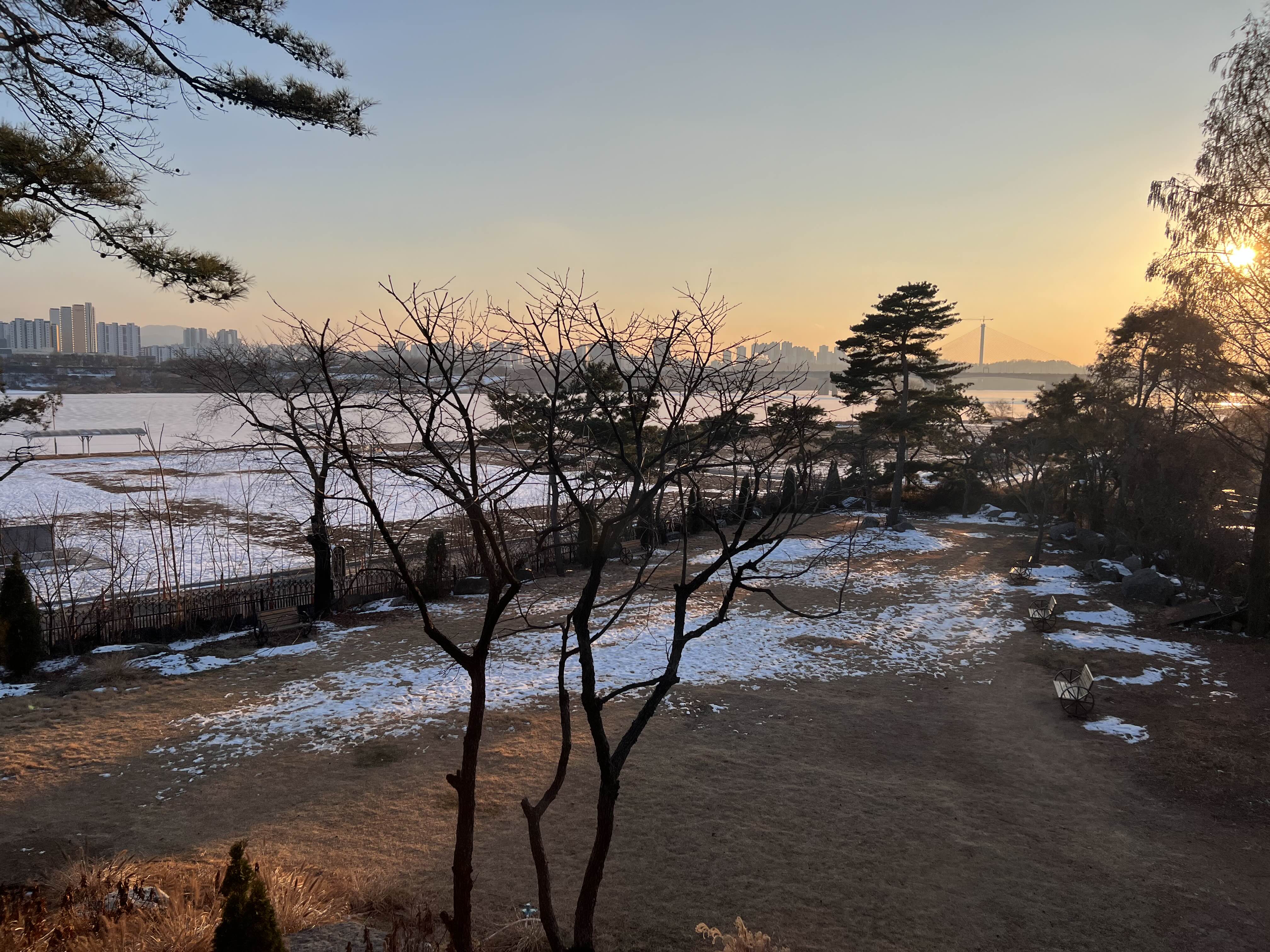 2층 나인블럭 창가에서 내려다본 한강의 모습. 오후에 가서 노을 지는 풍경을 볼 수 있었다.