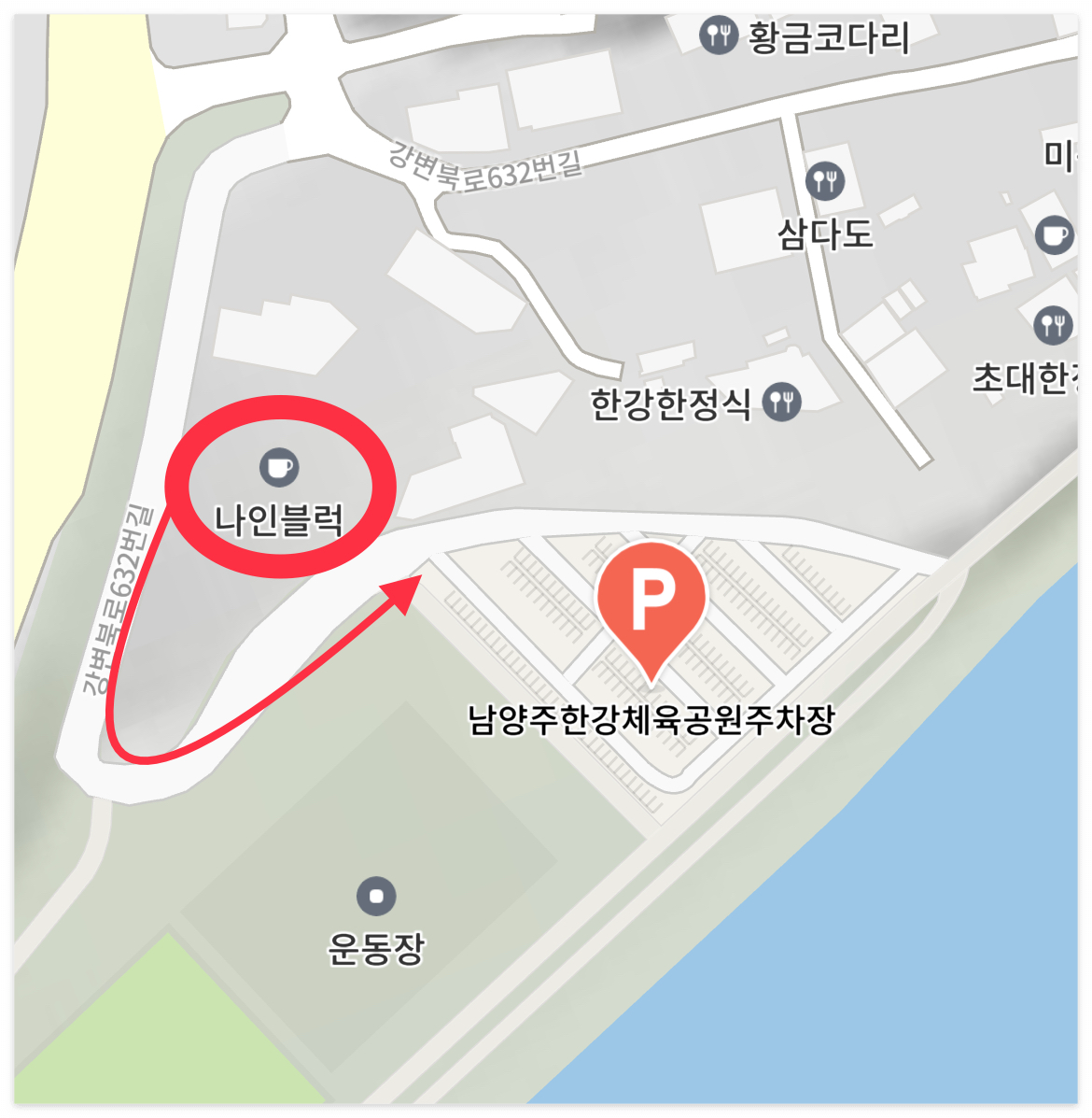 나인블럭 미음나루점 주차는 공영주차장에 하면 된다. 물론 카페 주변에 자리가 있으면 세워도 된다고 한다. 하지만 평일임에도 주변에 주차자리는 없었음.
