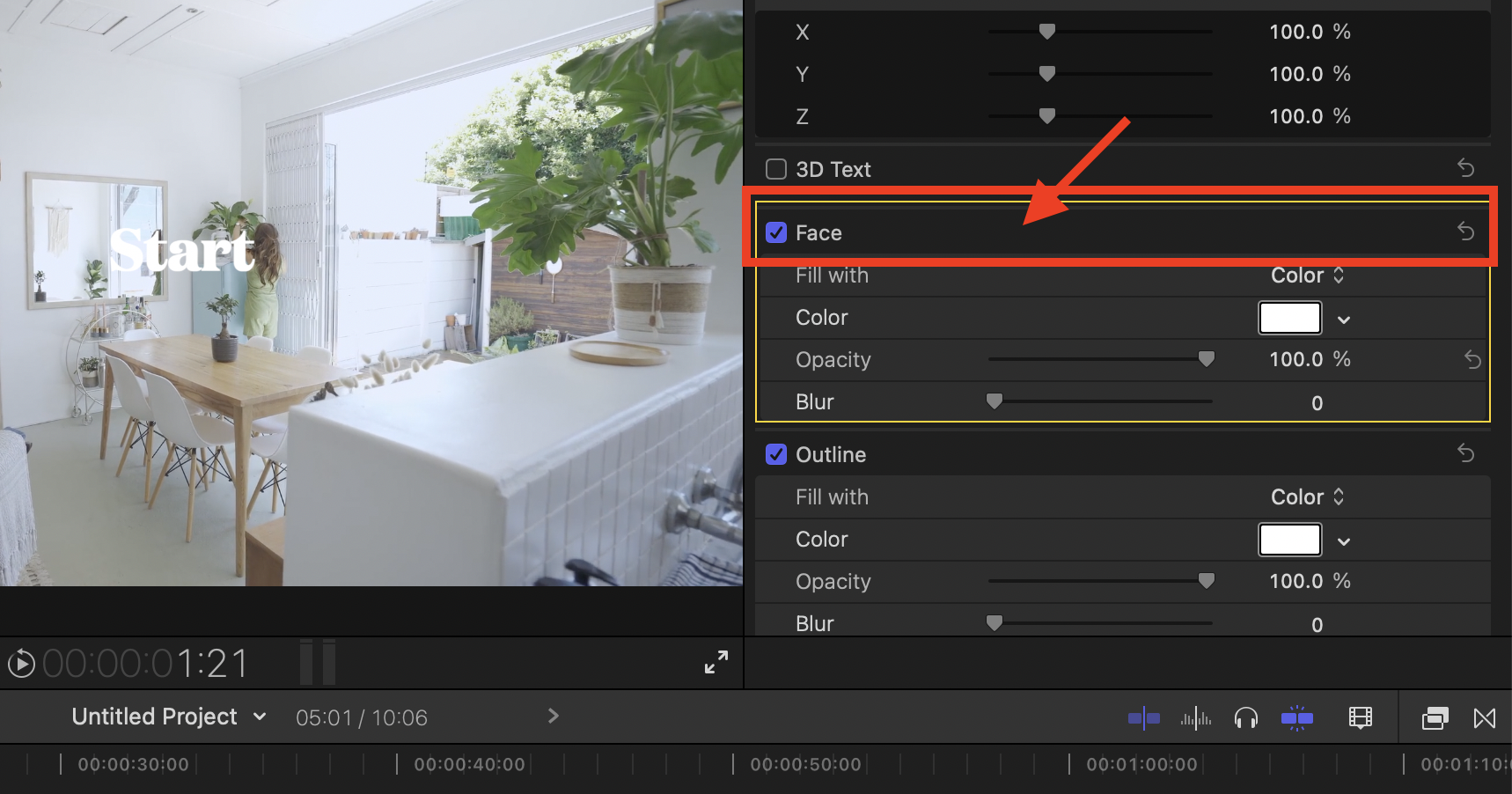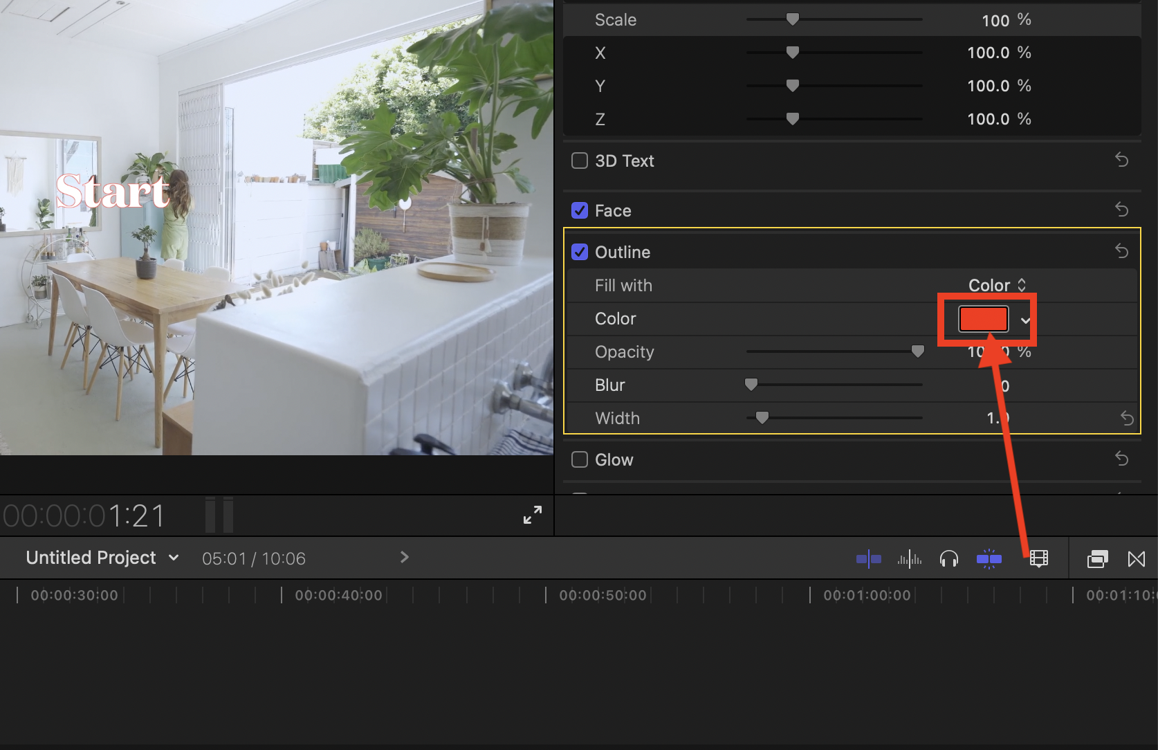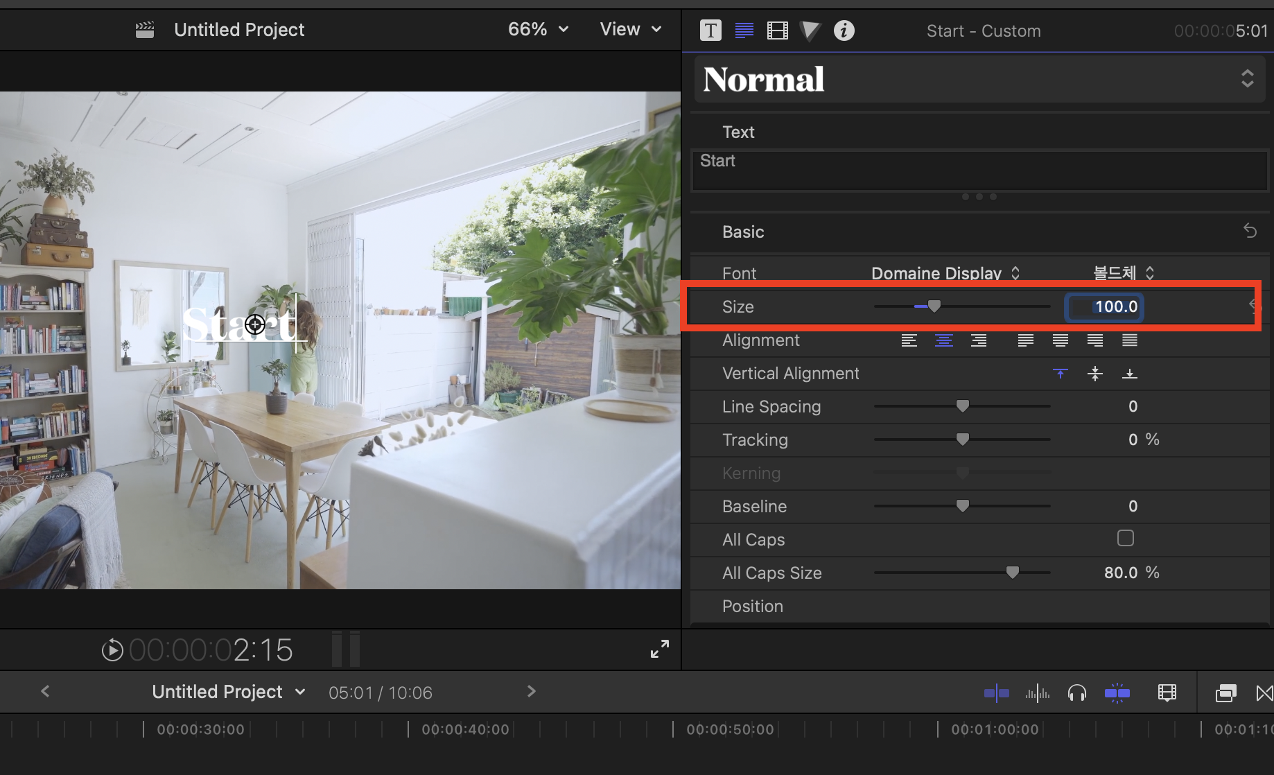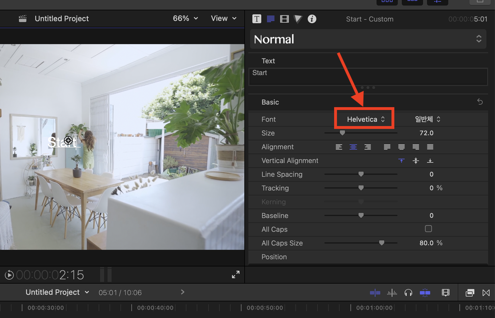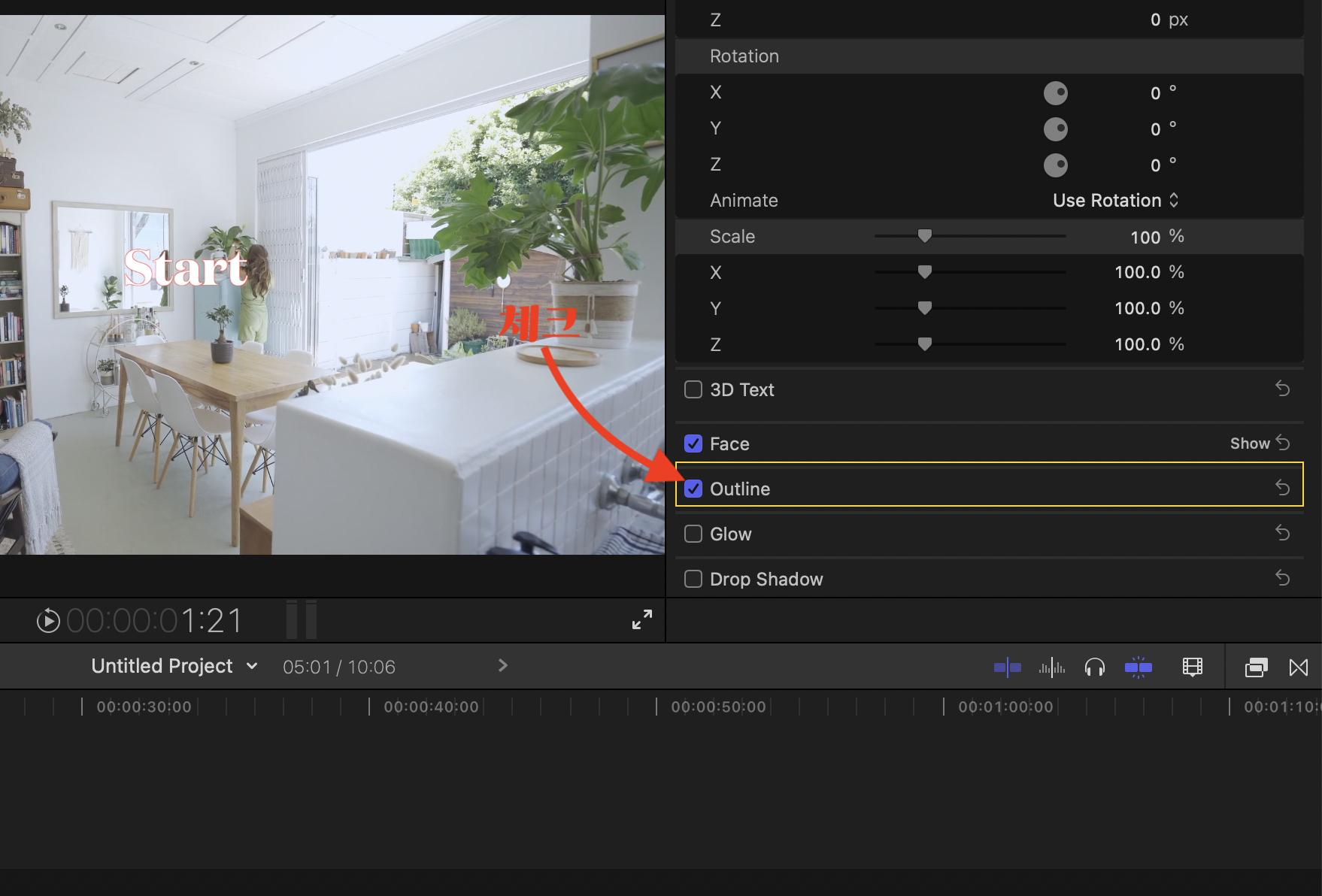 파이널 컷에서 위와 같이 폰트에 테두리만 있는 글자를 어떻게 만드는지 알아보겠습니다.