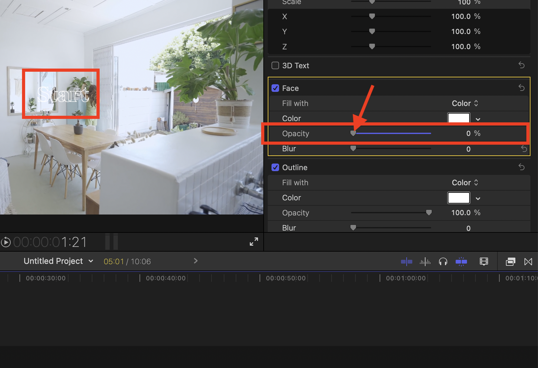 파이널 컷에서 위와 같이 폰트에 테두리만 있는 글자를 어떻게 만드는지 알아보겠습니다.