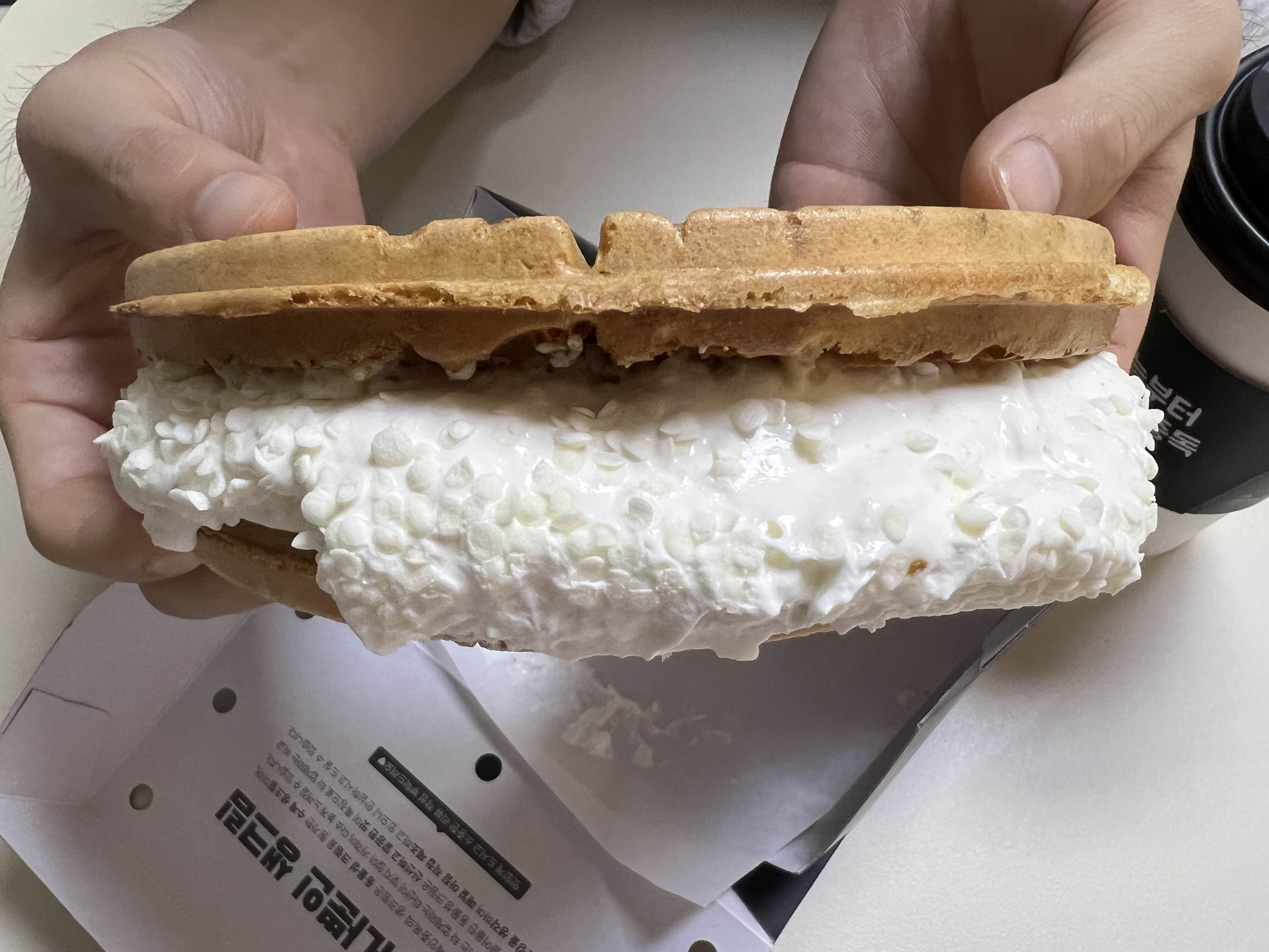누텔라 와플도 맛있었는데, 초코를 별로 좋아하지 않은 나는 <햅쌀 와플>이 정말 맛있었다. 이미 유명한 와플일 수도 있지만, 나는 처음 먹어보기 때문에 완전 신세계였다. 앞으로 자주 시켜 먹을 것 같다. (살은 언제 빼나) 동물성 크림이라서 가격이 비싸다고 하던데, 그래서 그런지 가격은 사악하지만 정말 맛있었다.