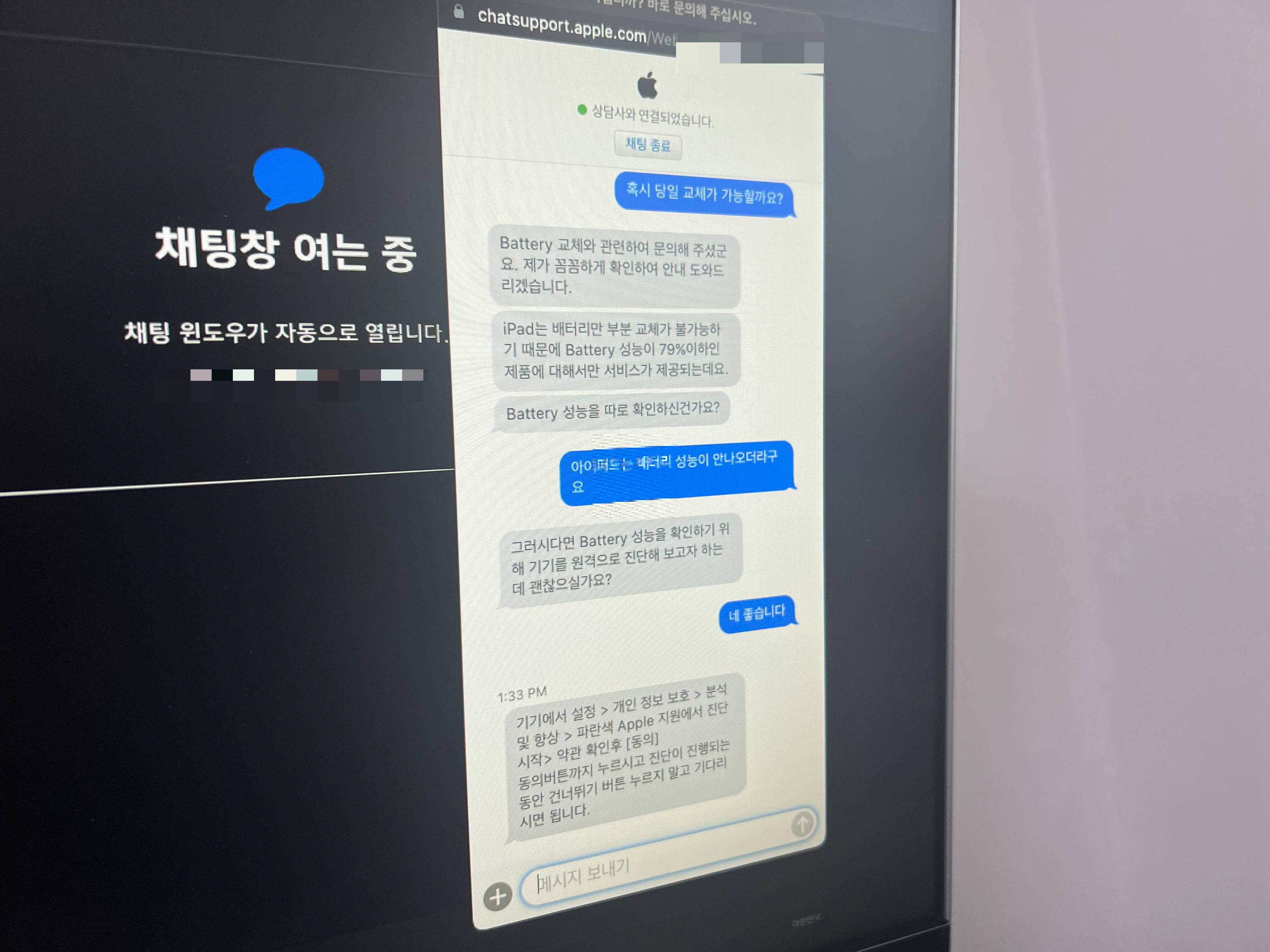 그런데 이게 무슨일. 배터리 교체가 79% 이하인 경우에만 가능하다고 했다. 내 아이패드 제품은 배터리만 부분교체가 안되기 때문에 79% 이하만 전체 교체를 해준다고 한다.