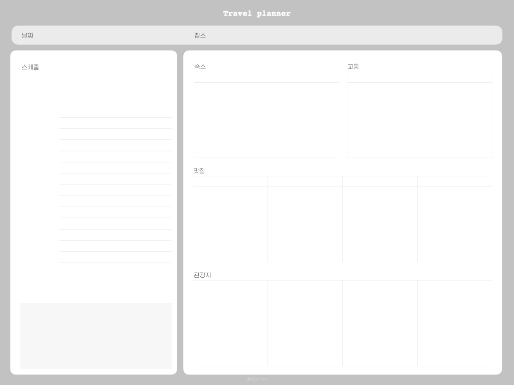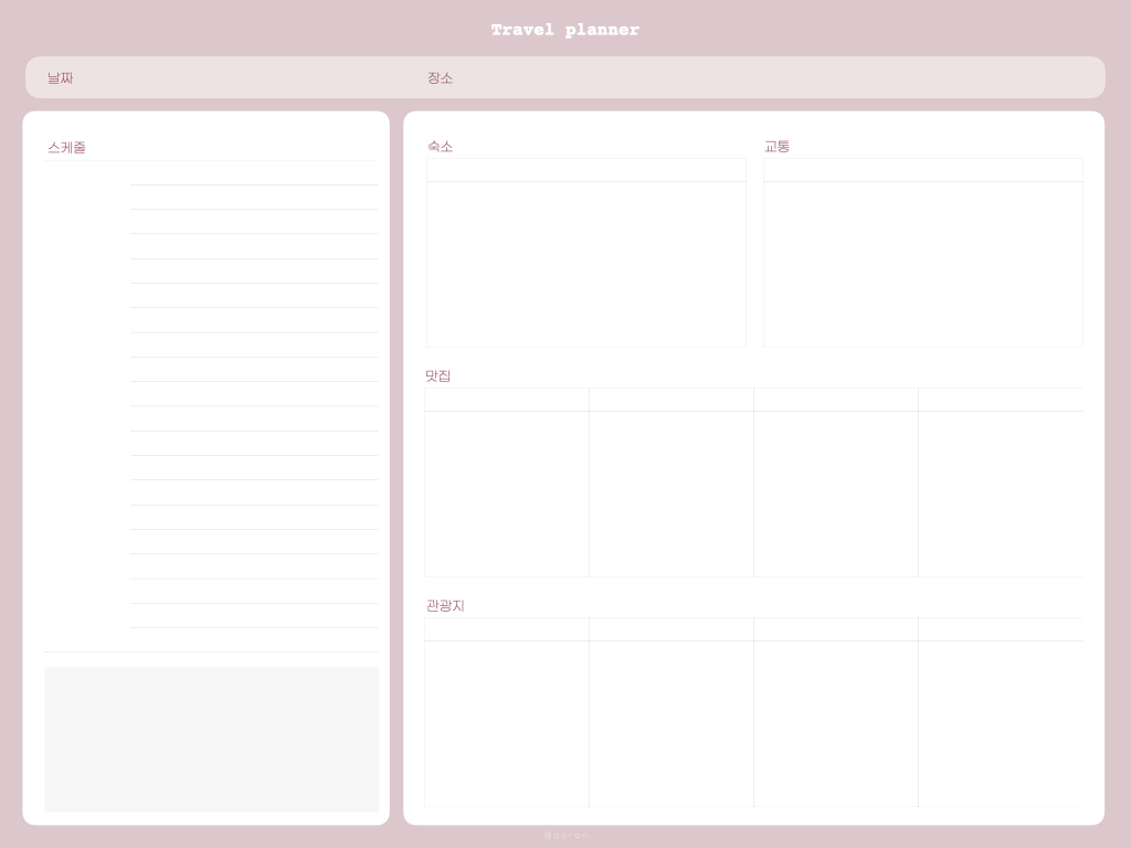 안녕하세요 도란입니다. 오늘은 얼마 전에 댓글을 보고 고민하다가 만든 속지인데요. 바로 여행 플래너 속지입니다. 마침 여행 준비 중이어서 빈 스터디라인노트에 여행계획을 적고 있었는데, 저도 플래너 속지가 있으면 정말 좋겠더라고요. 물론 제가 떠날 여행 위주의 플래너인 점은 감안해 주세요. ㅎㅎㅎ