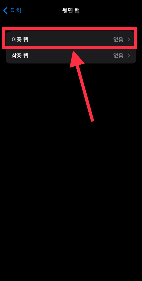 ▼ 뒷면 탭도 이중탭 혹은 삼중탭을 선택할 수 있는데, 이 중에 [이중 탭]을 누른다.