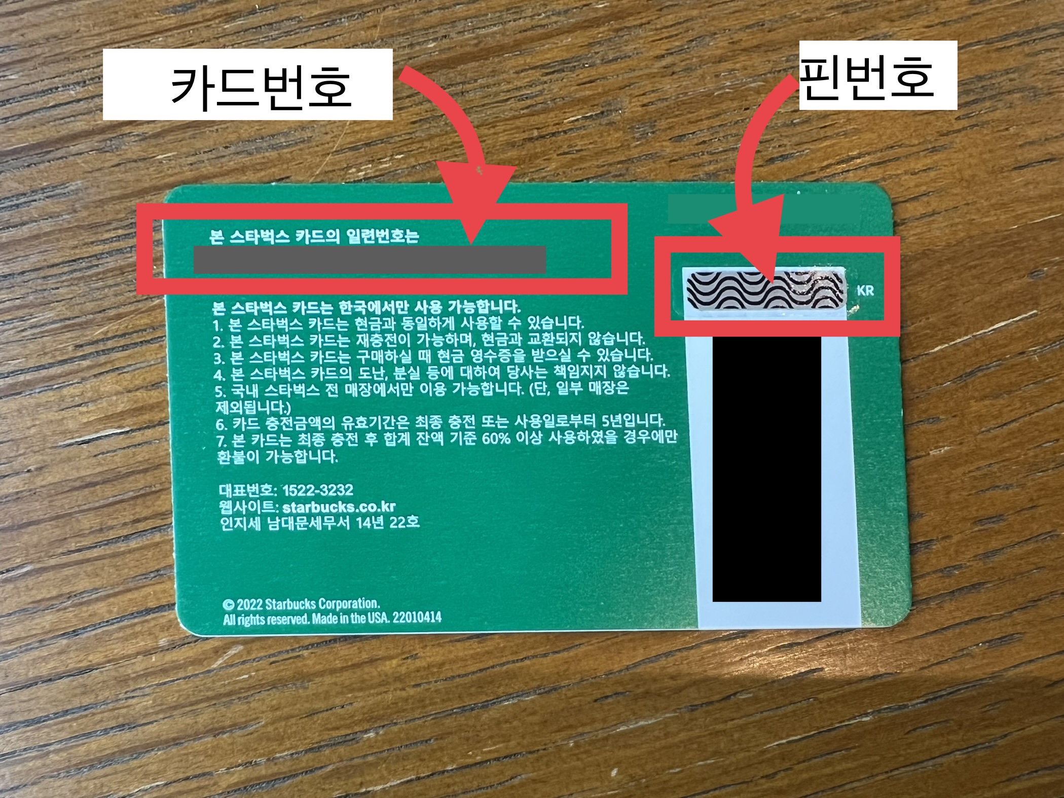 ▼ 그리고 실물카드에 있는 카드번호와, 핀번호를 확인한다. 핀번호는 동전이나 손톱으로 긁으면 나온다.