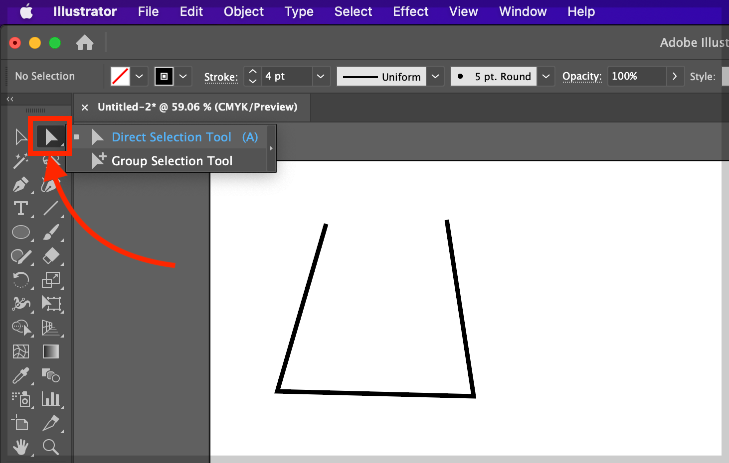 ▼ 먼저 왼쪽에 있는 Tool Bar 에서 [Direct Selection Tool] 을 선택한다.
