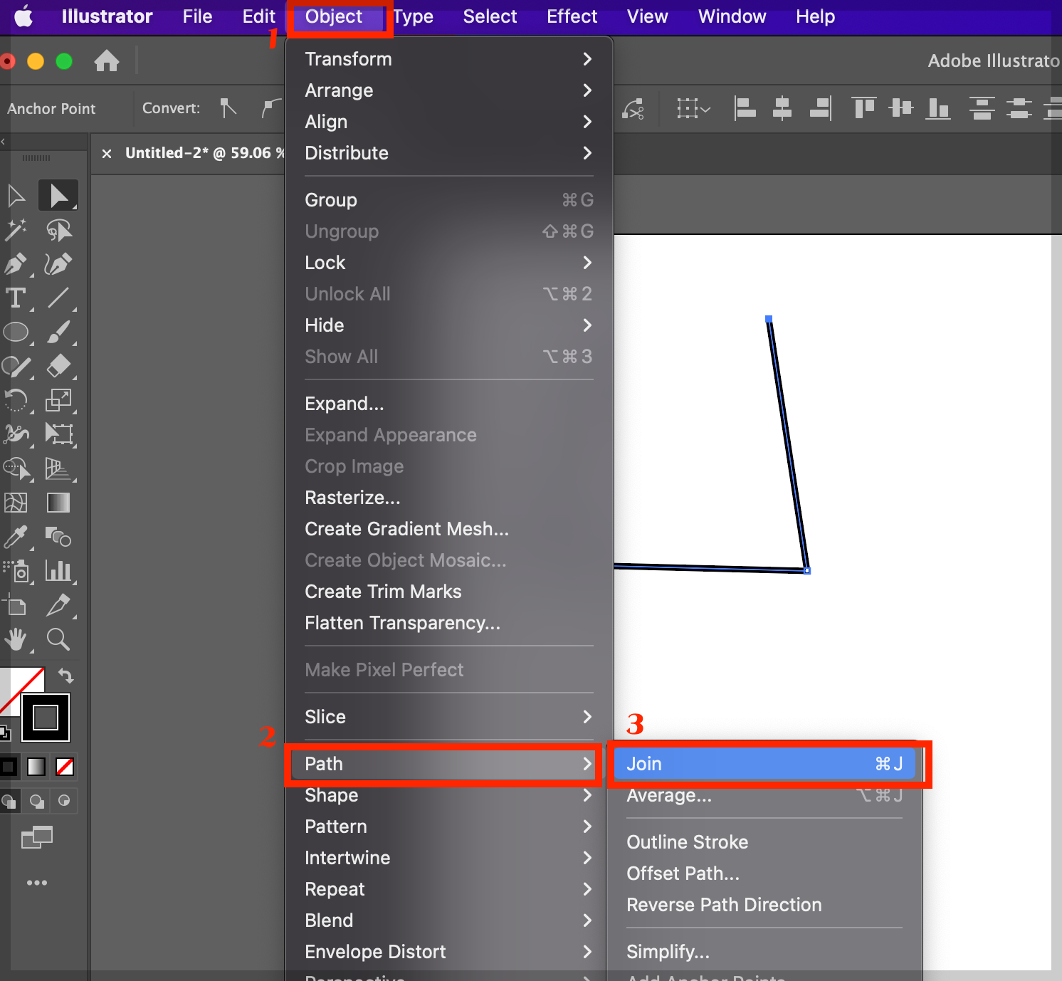 ▼ 그리고 상단 메뉴에서 [Object] - [Path] - [Join] 을 선택한다.