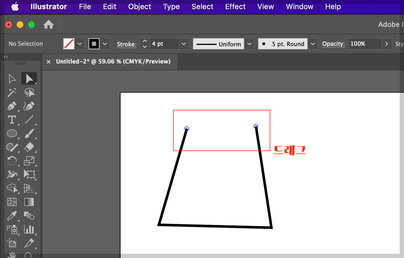 ▼ 연결 해줘야 할 두 포인트를 드래그 해준다. 혹은 Shift를 누른 채 두 점을 선택한다.