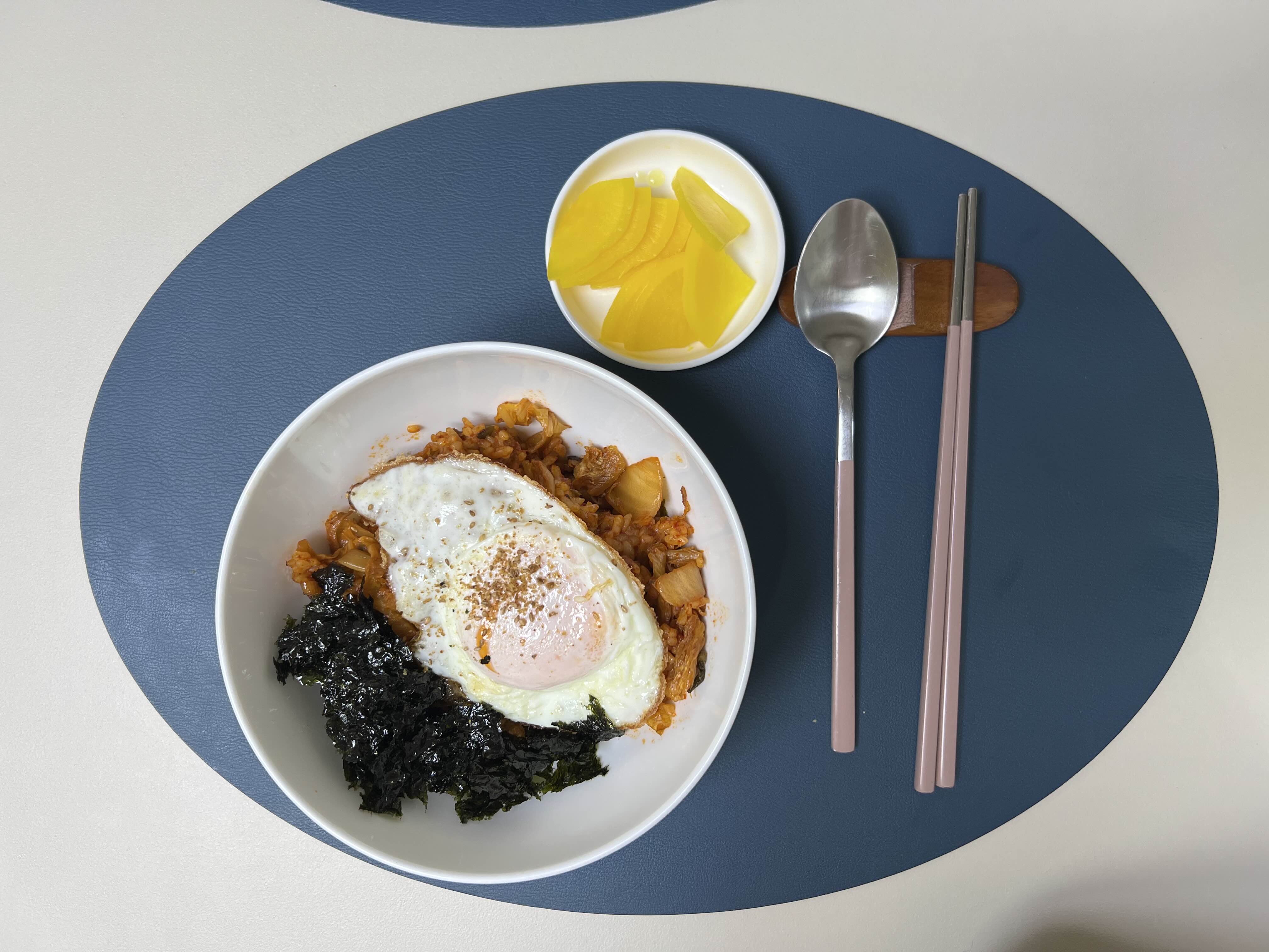 저는 후라이팬이 한개라서 볶음밥을 그릇에 덜어놓고 다시 팬을 씻는 뒤 계란후라이를 했어요.