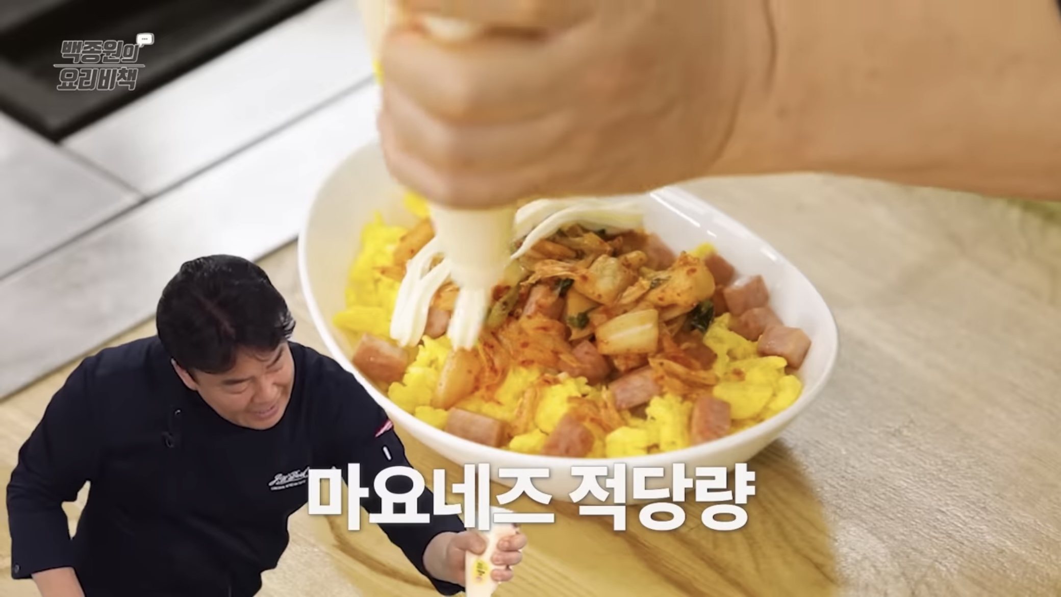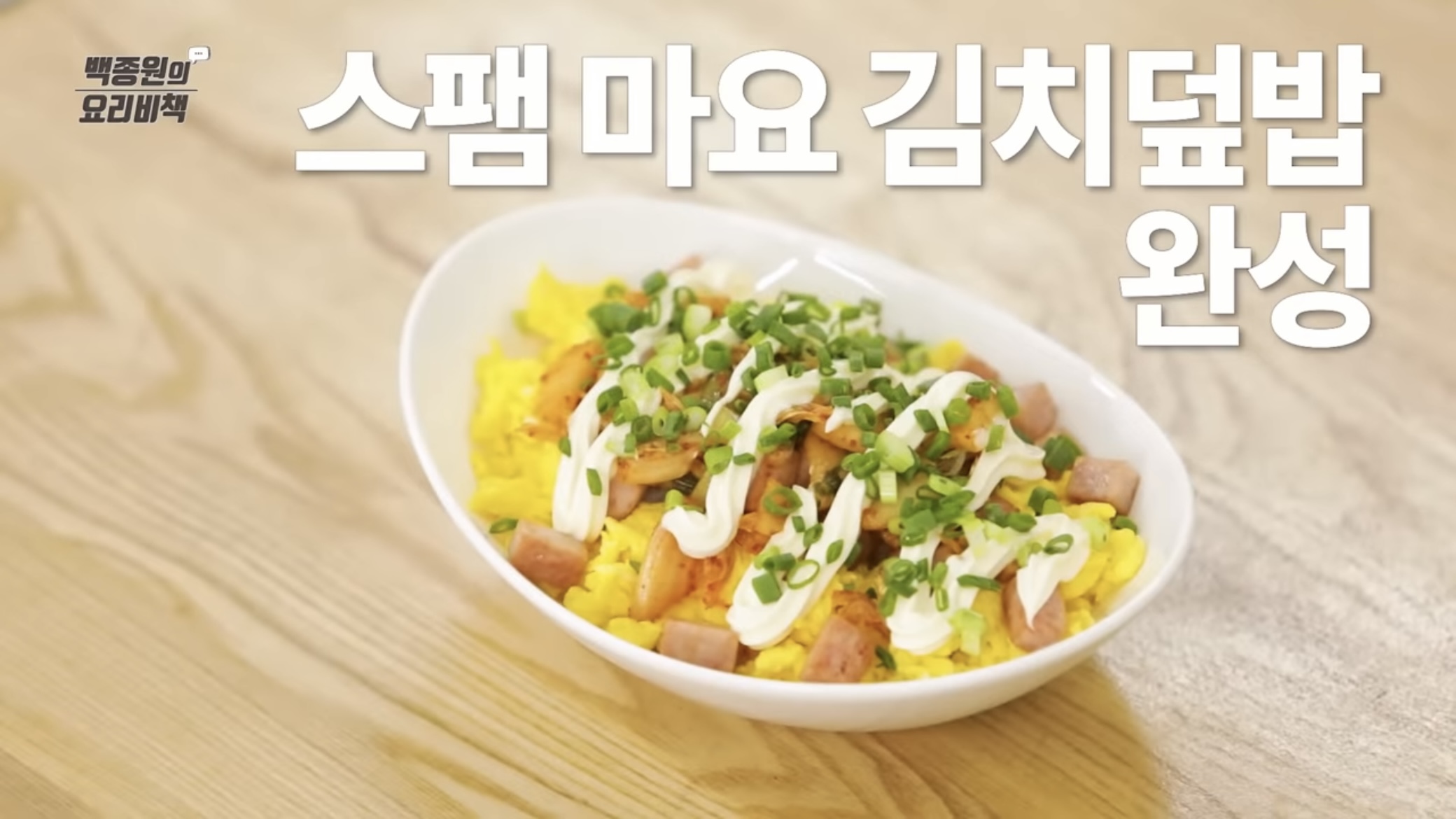 백종원 스팸마요 김치 덮밥이 완성된다.