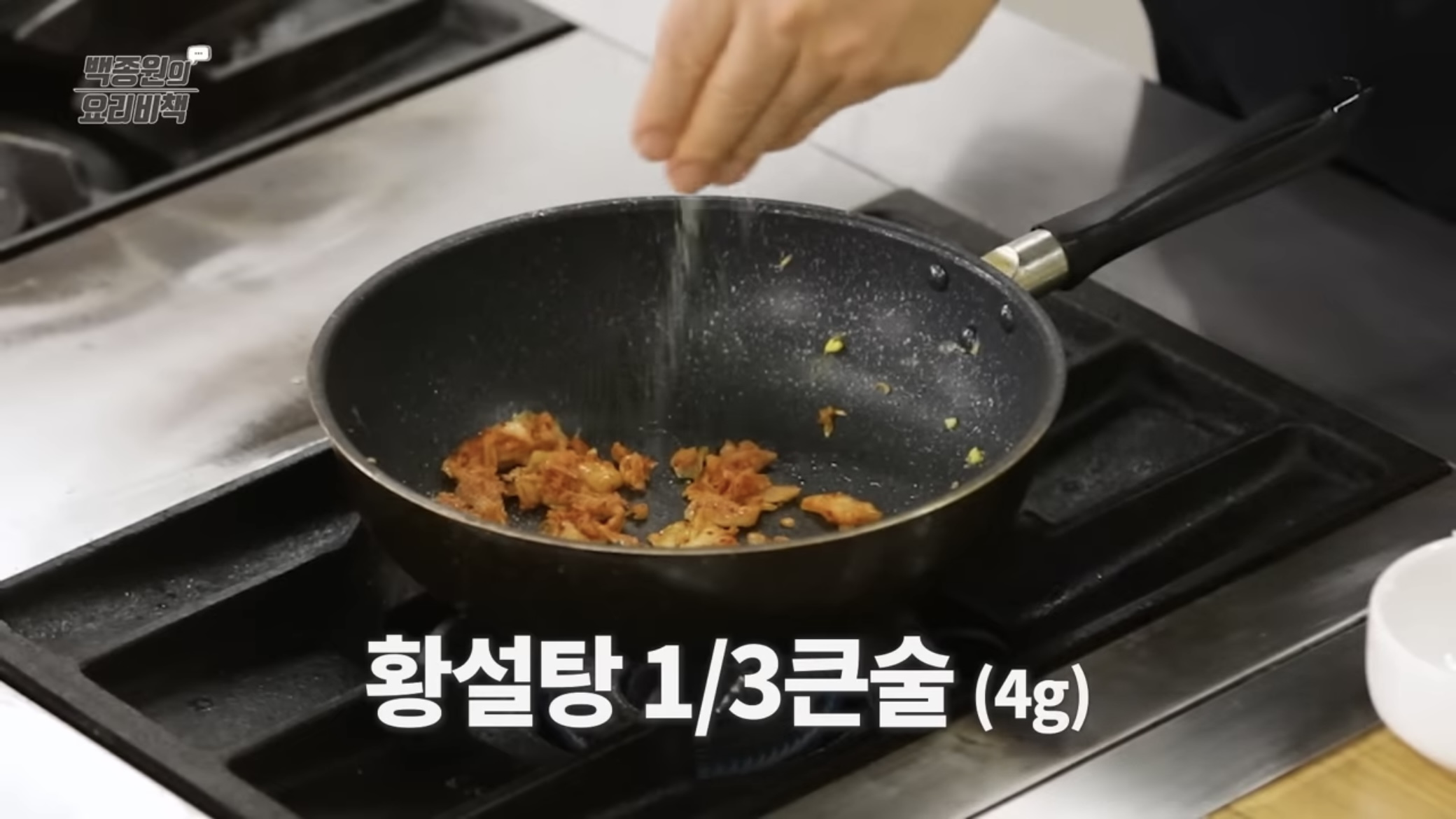 김치를 추가해야할 때에는 신김치를 넣고, 설탕을 넣어서 볶는다.